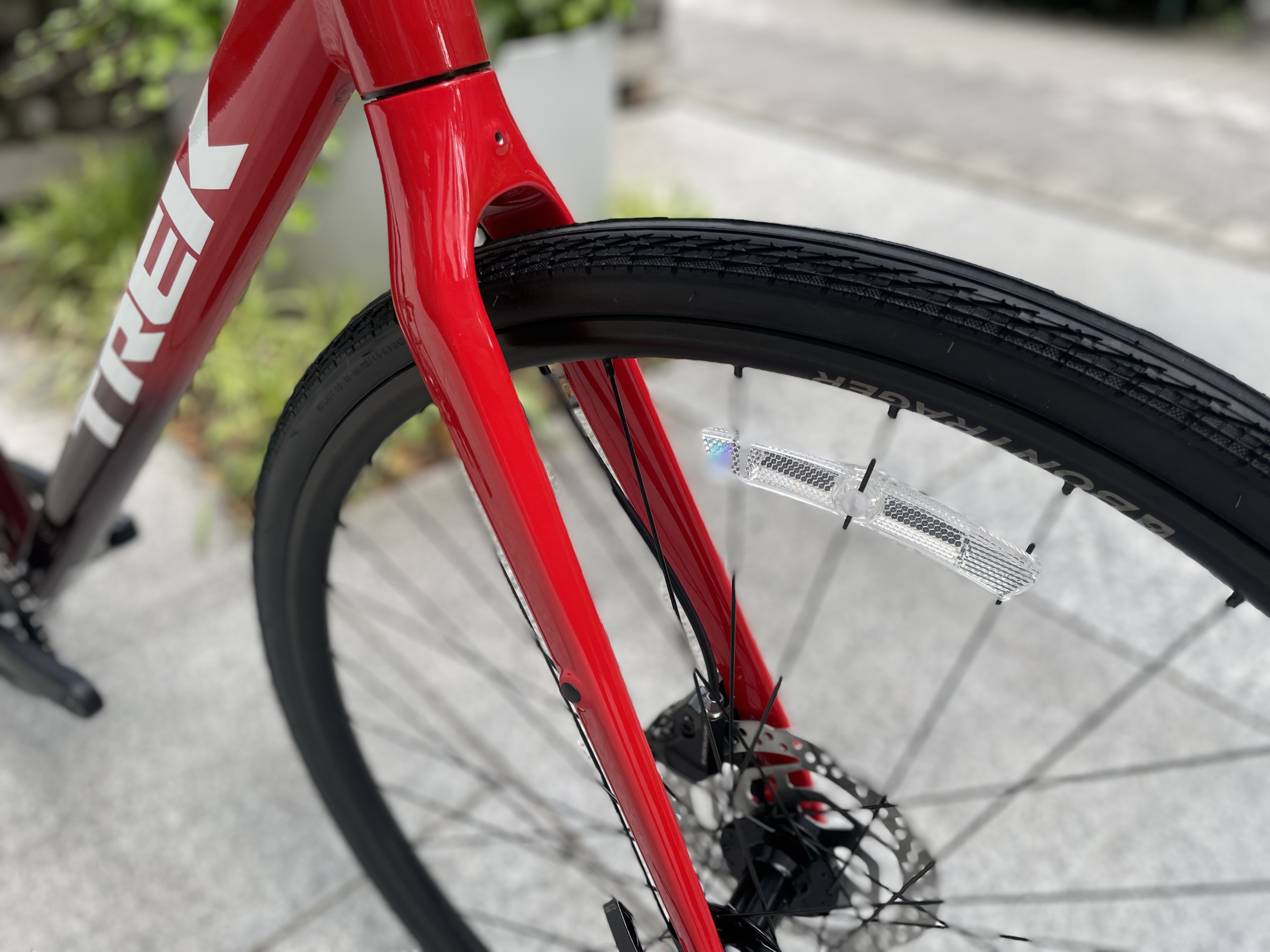 FX3 DISCはフォークの素材がカーボンでできており、丈夫で快適に走行することができます。振動吸収性に優れたカーボンフォークが、地面から腕や手のひらに伝わる微振動を吸収してくれて、長時間乗っていても快適に走ることができます。