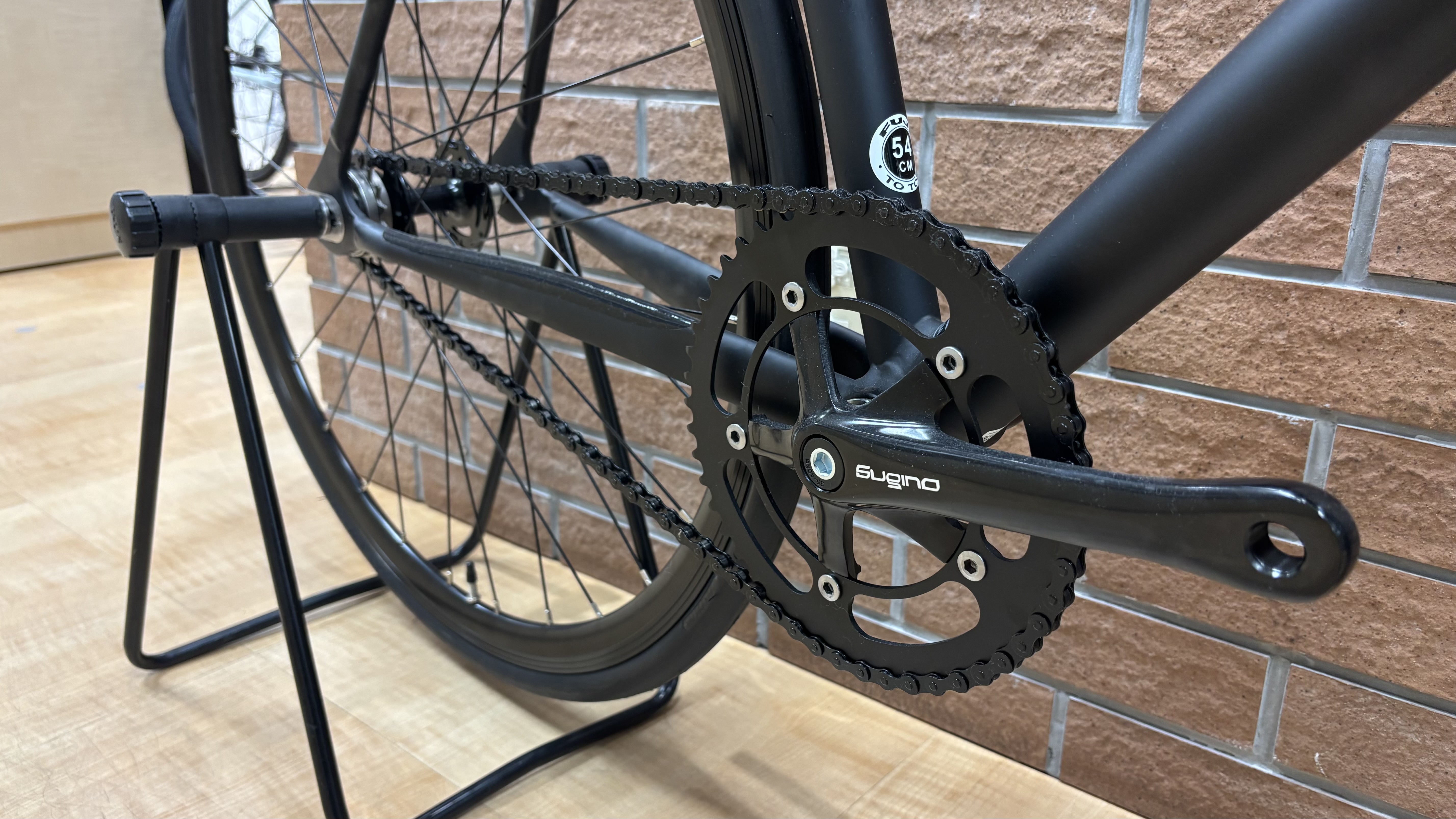 この車体は 純正でもSUGINOのクランクやカーボンフォークが採用されており、このまま快適に乗ることができます。