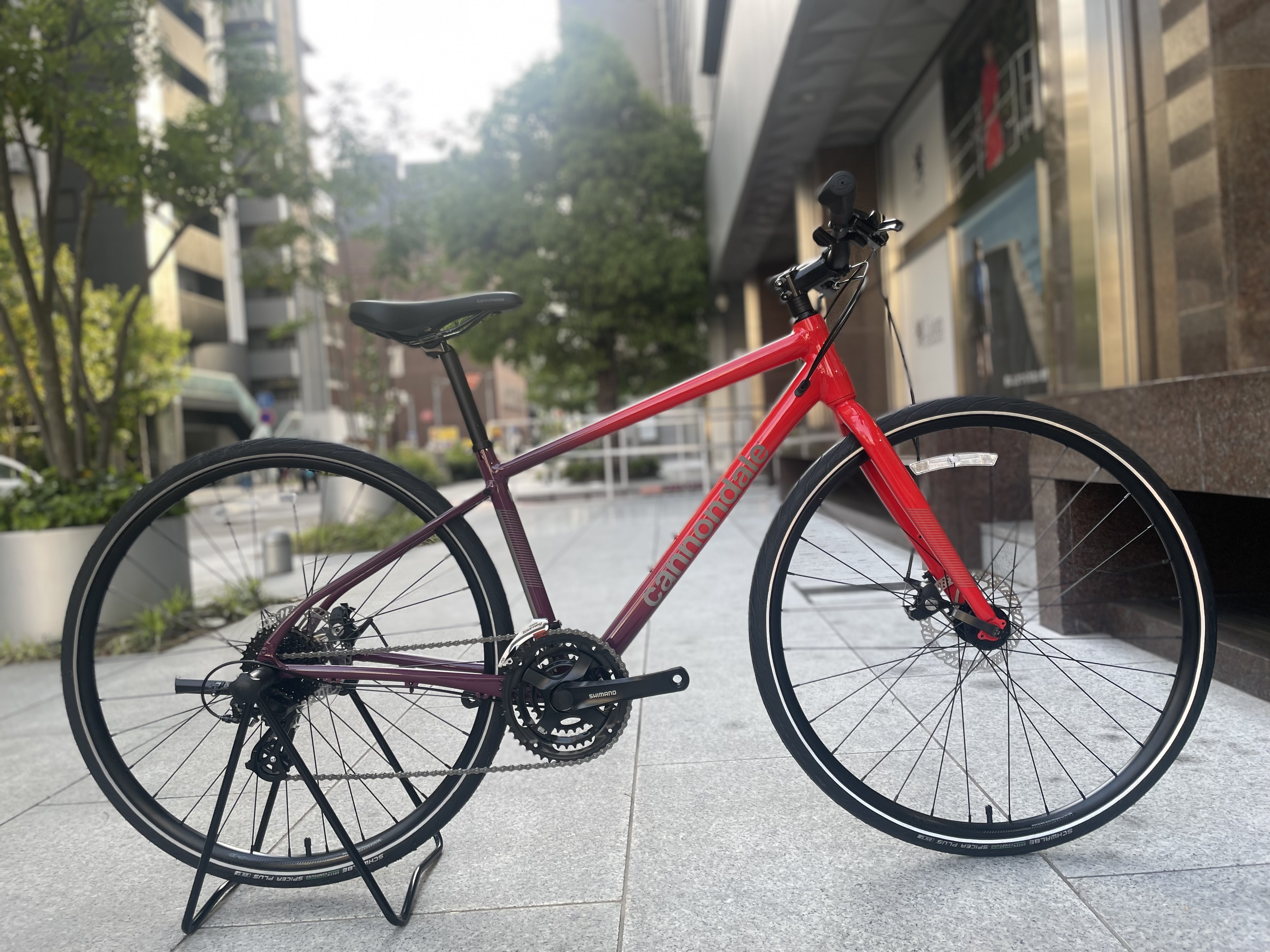 何が限定なんだろうと調べましたら、カラーとデザインが通常のQUICKシリーズとちょっと違うんですよね。限定モデルは、『cannondale』のロゴがダウンチューブに大きくあるのですが、通常モデルはトップチューブ脇にあって少し控えめなんです。