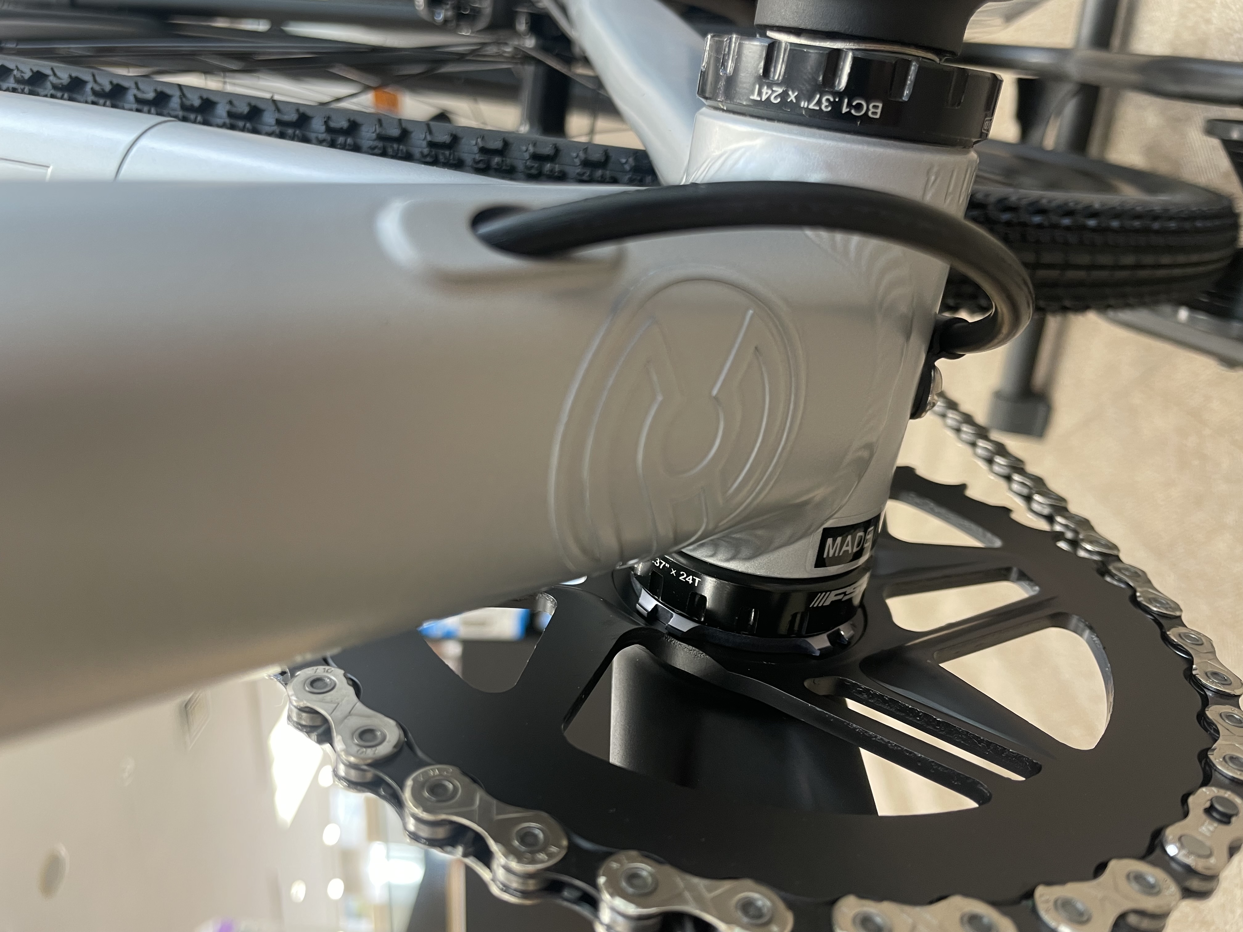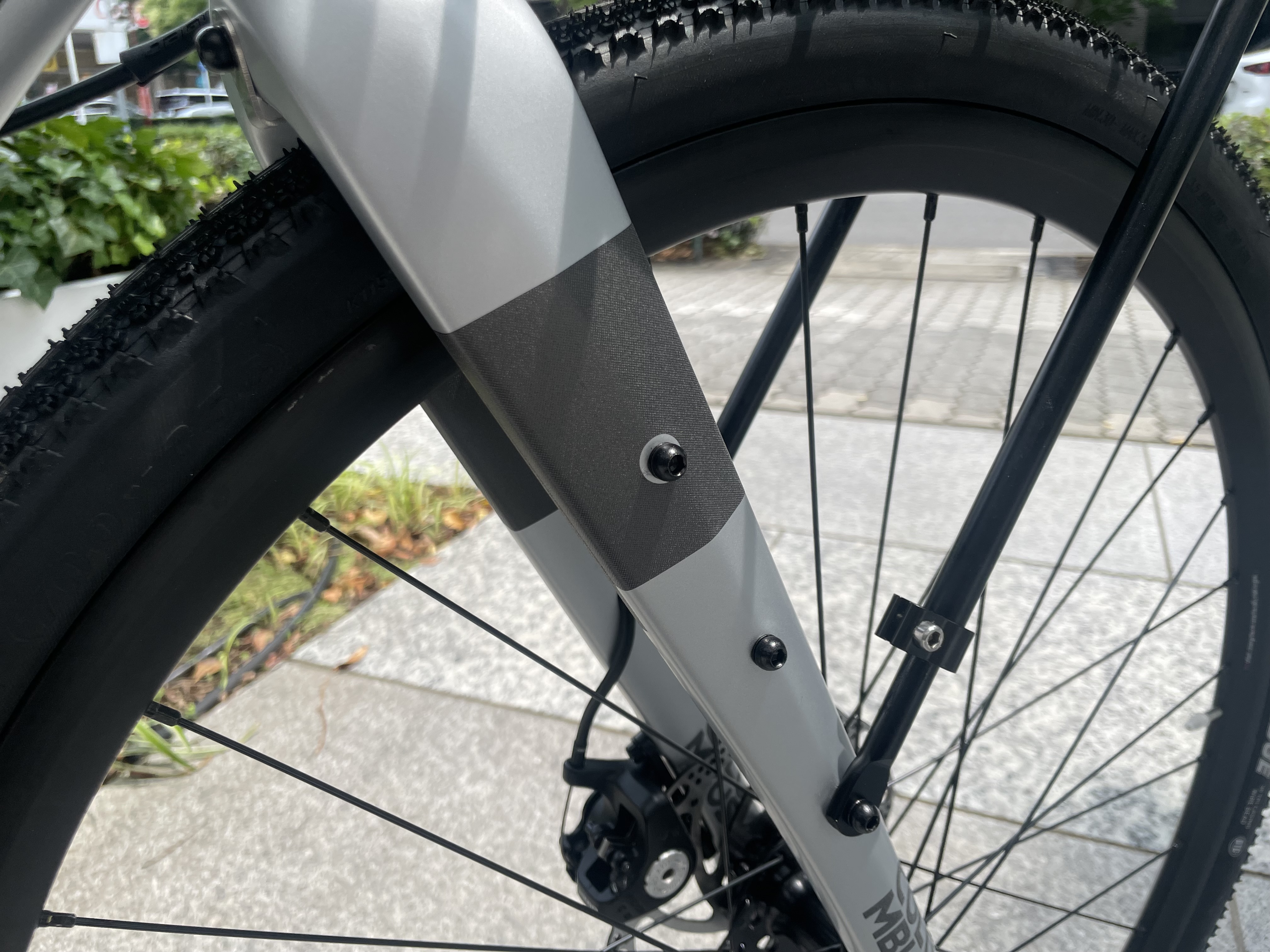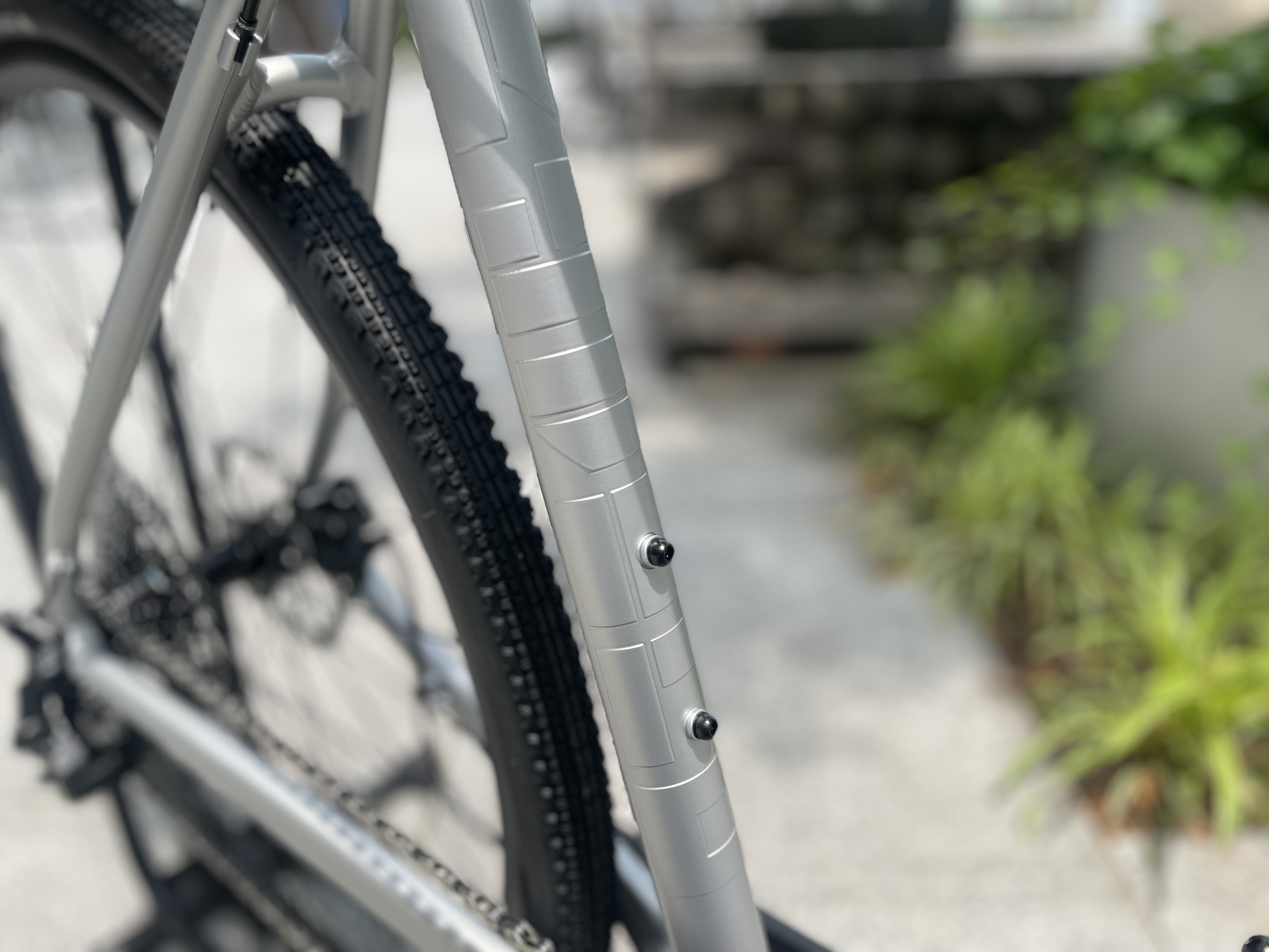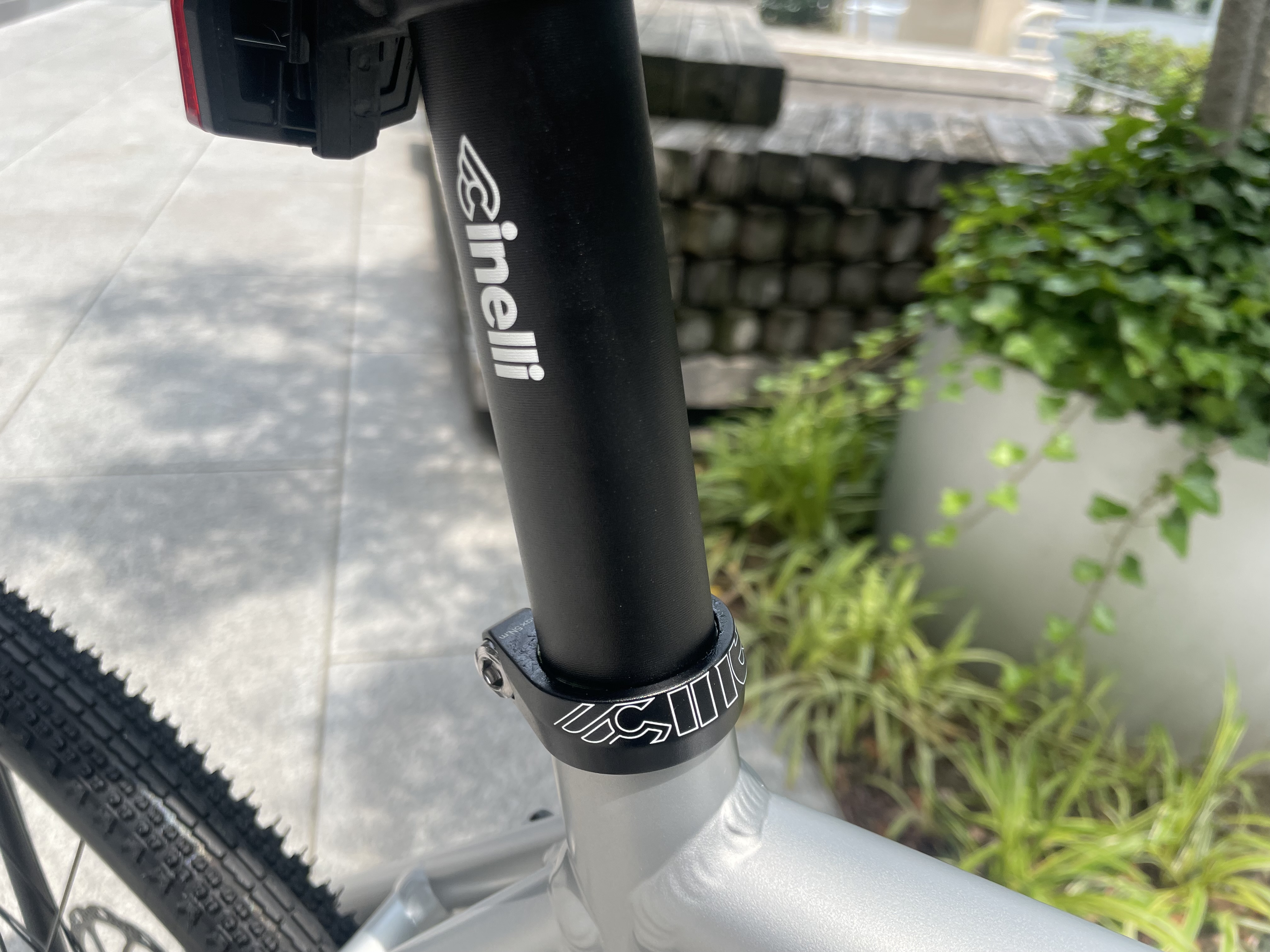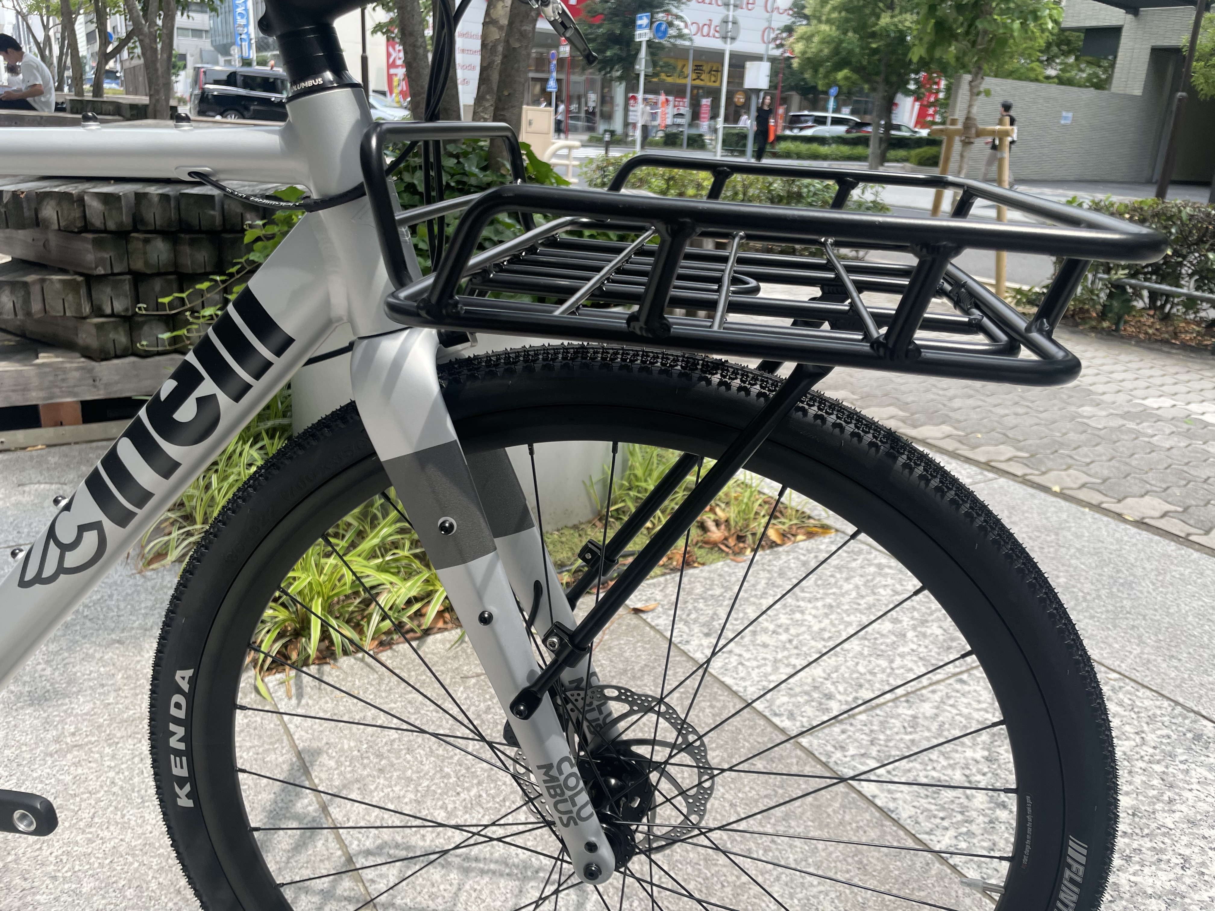 タイヤクリアランスは最大40Cまで可能です。標準では35Cタイヤを履いています。街中を走るには振動も吸収してくれてちょうどいい太さですね。