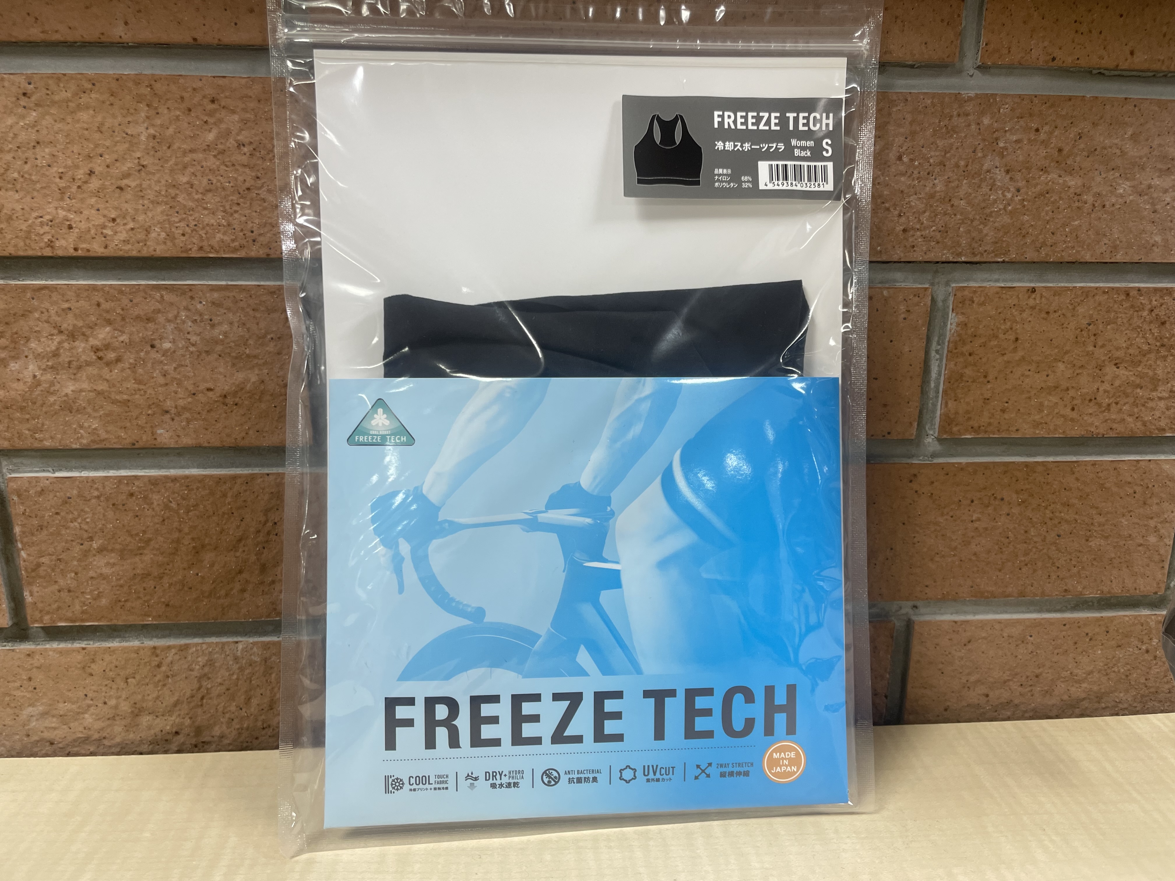 FREEZE TECHは接触冷感生地に加え、裏地全面にエリスリトール、キシリトールを含有した特殊プリントを施しています。 この”特殊冷感プリント”で処理した繊維が、人の皮膚から発生する水分(汗)を吸収すると、その吸熱特性により繊維の温度が下がり、持続的に冷感を付与します。 また、風をうけることにより冷感をさらに強く感じることができます。(公式サイトより引用)