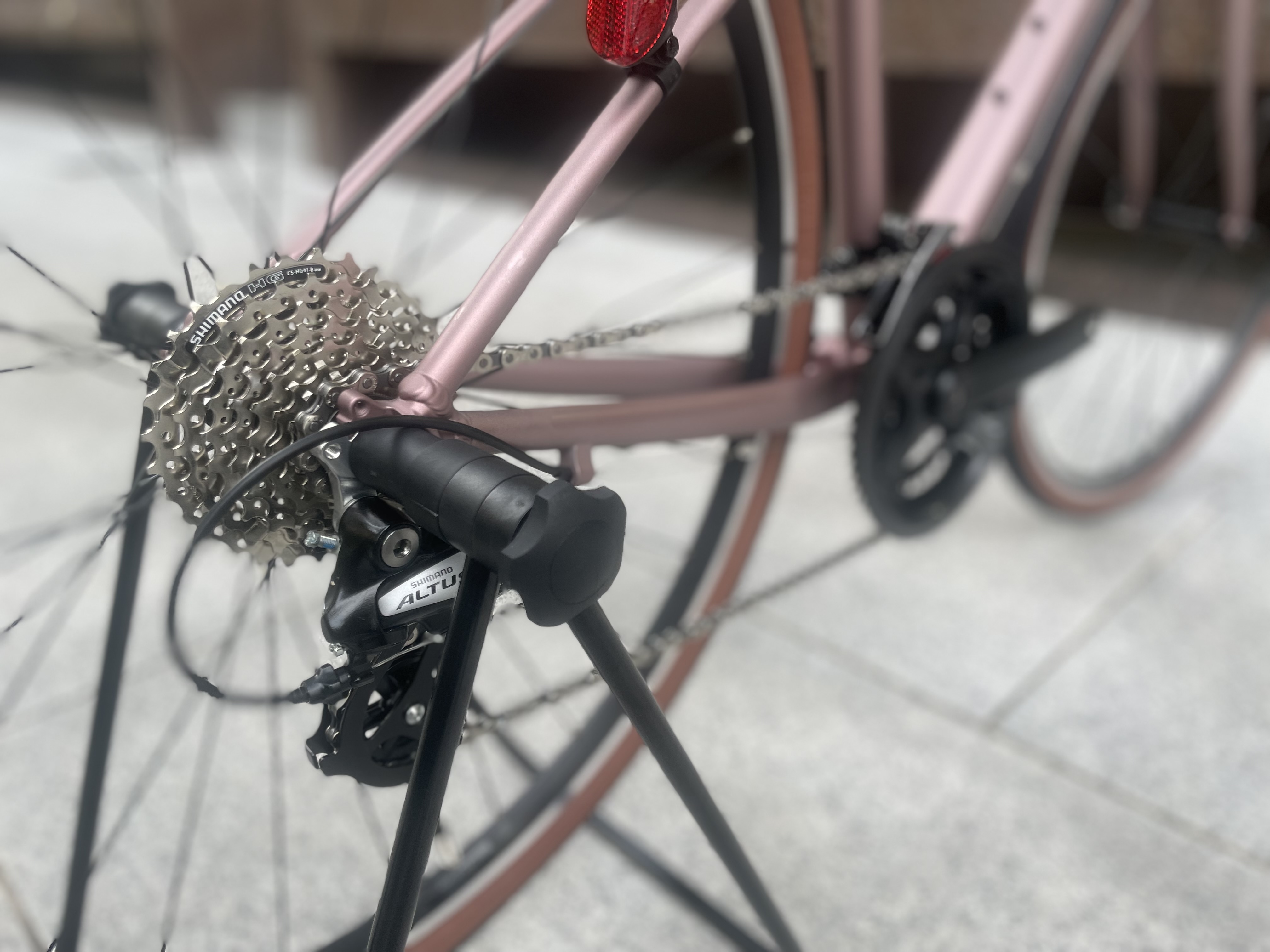 うん。やっぱりかわいい。ちなみにサドルはGIANTと同じく、バイシクルロックやリアライトが装着できる『UNICLIP』が採用されております。ですが、フレームのサイズが小さいとロックを付けるのが難しい場合もございますので、ご相談ください。