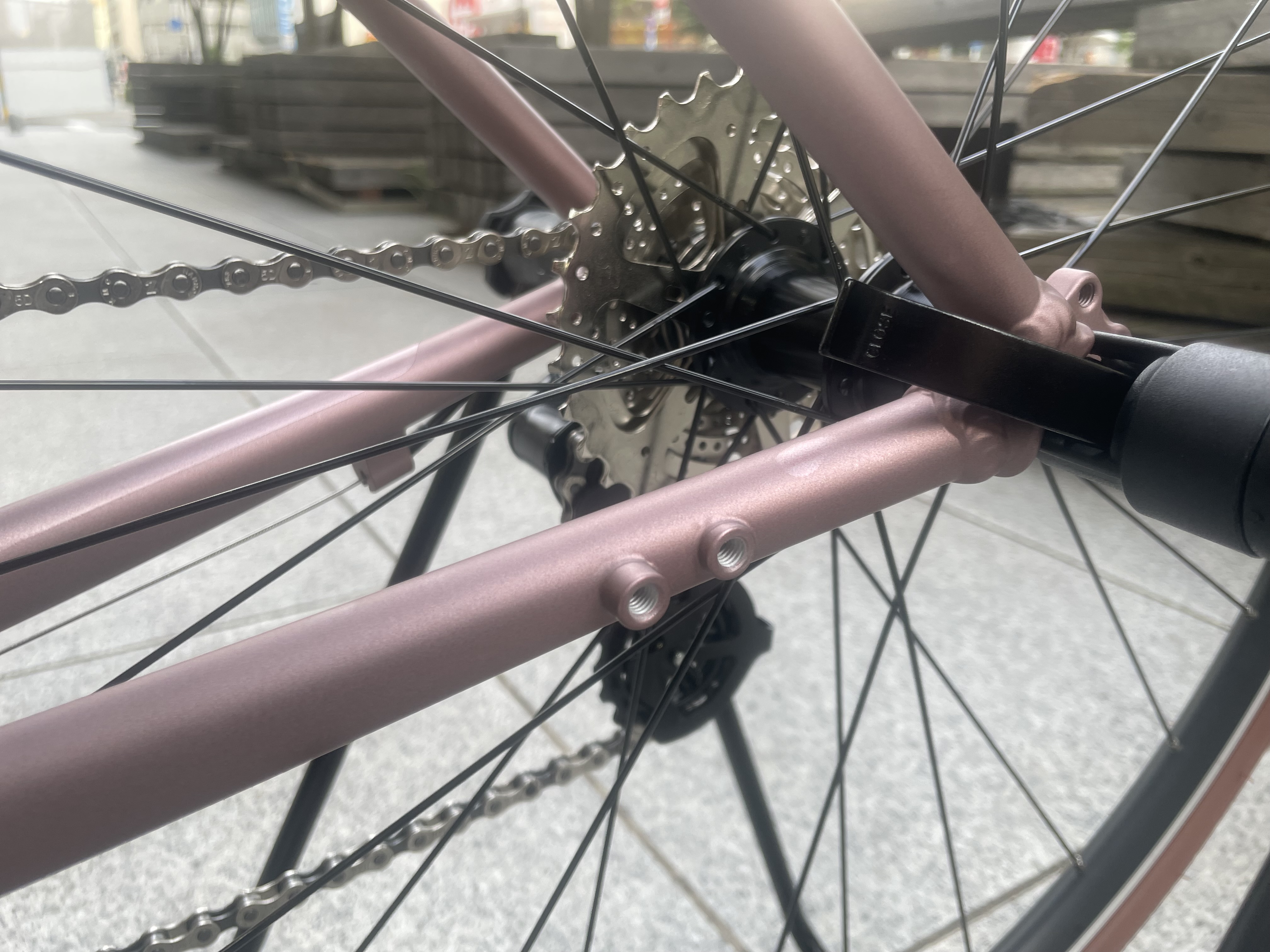 以前まではホイールのクイックリリース部分を使っておりました、『QRキックスタンド』こちらは¥4,400(税込)だったのですが、2026年からは『KSAキックスタンド』¥3,850(税込)で付けられるようになりましたので、ちょっとだけコストが抑えられます。いいことばかりですね。