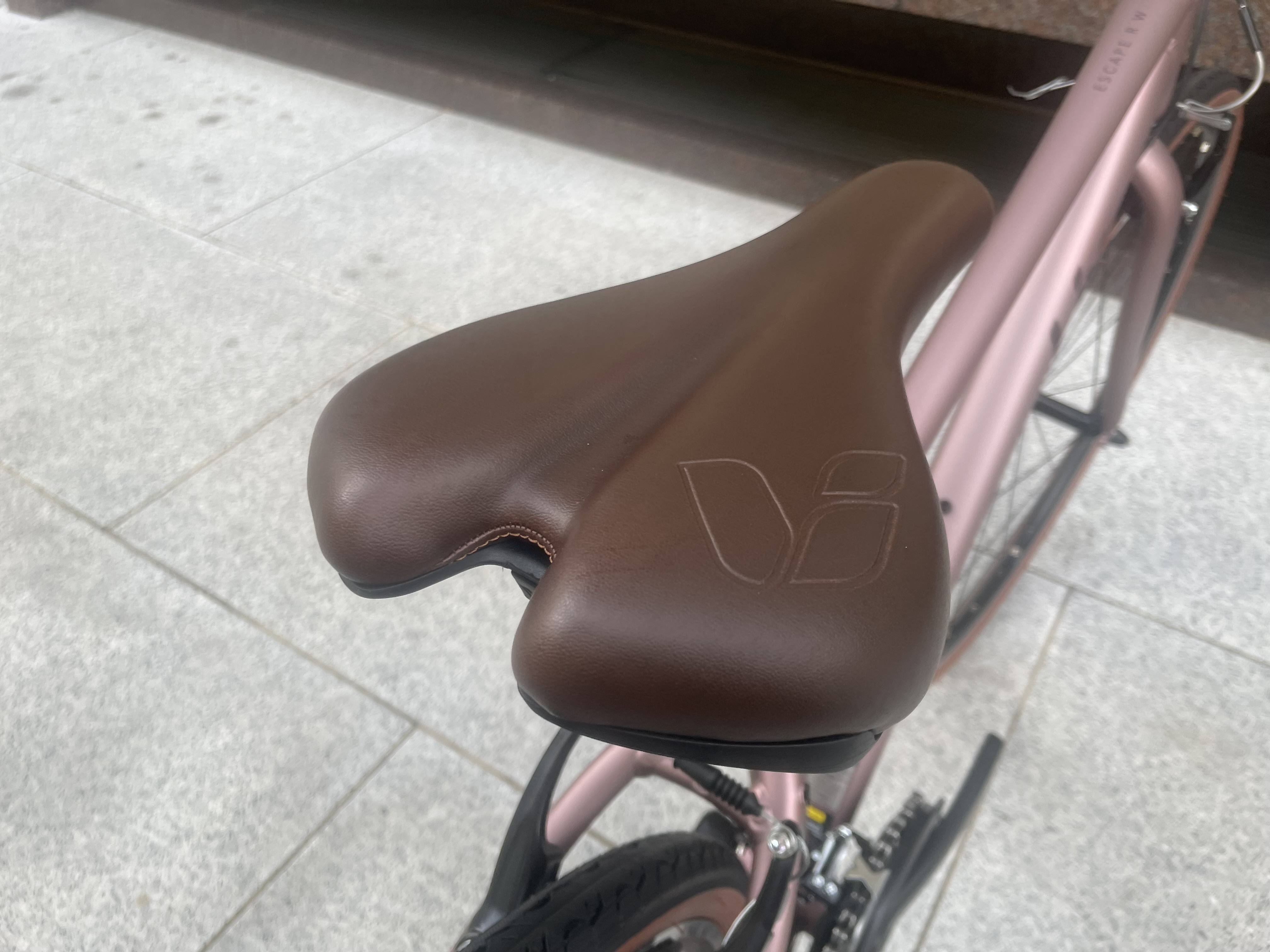 左が『Liv ESCAPE R W』、右が『GIANT ESCAPE R3』です。サドルを見比べますと、Liv ESCAPEの方がやや広めのサドルなんです。硬さはほぼ一緒かなぁと。ちょっとLivの方が柔らかいかもしれません。実際に触って確かめることもできますので、お気軽にお声掛けくださいませ。女性専用仕様と書きましたが、男性が乗っても全然OKですからね。こういったカラーは珍しいので持っていると他人と被らなくていいなぁと思えるはず!!