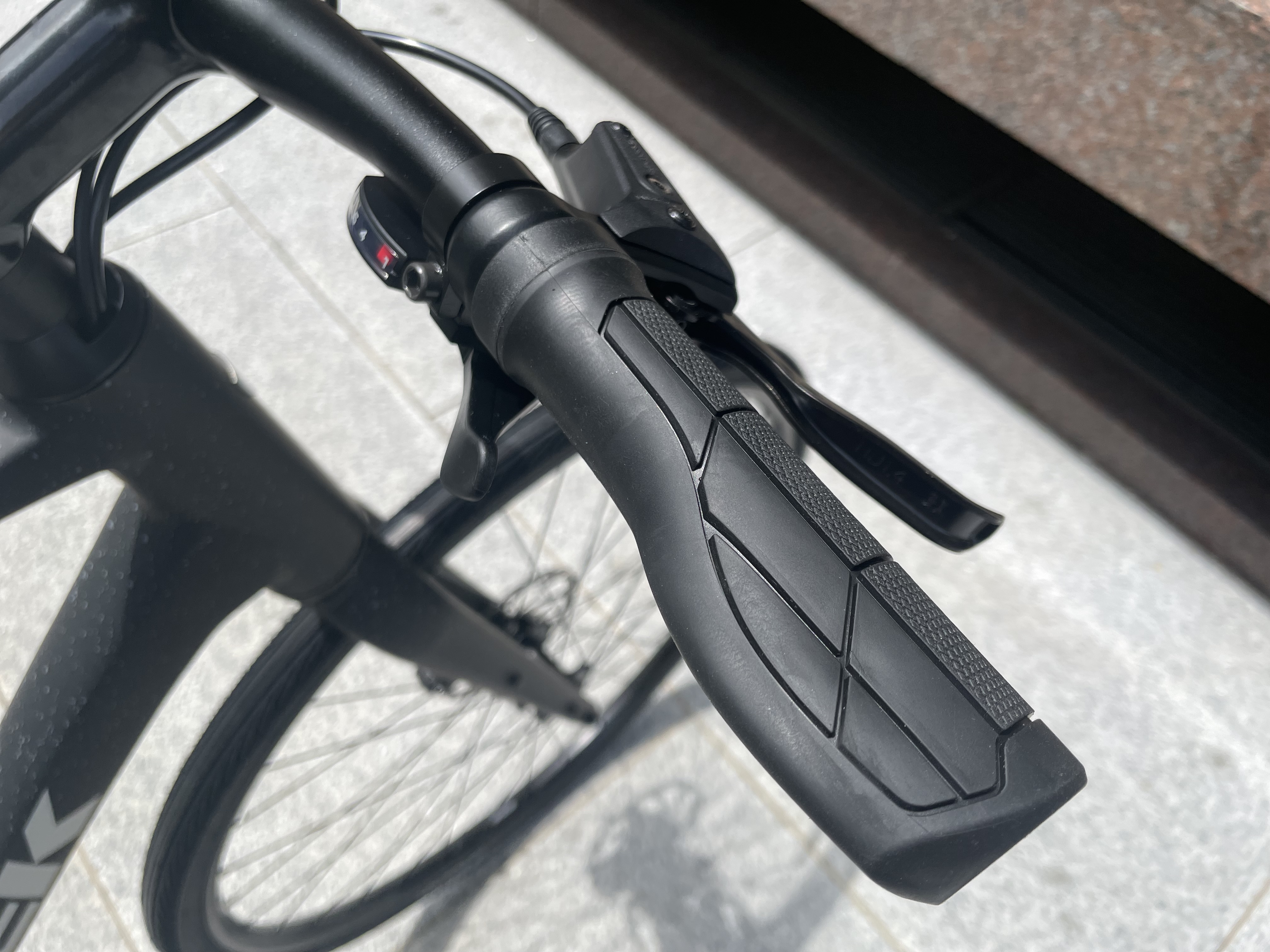 カラーがグレーからブラック に変わっていて、よりエルゴノミックらしい形状に。ロングライドでも手や腕に負担がかかりにくく、快適に走行できます。