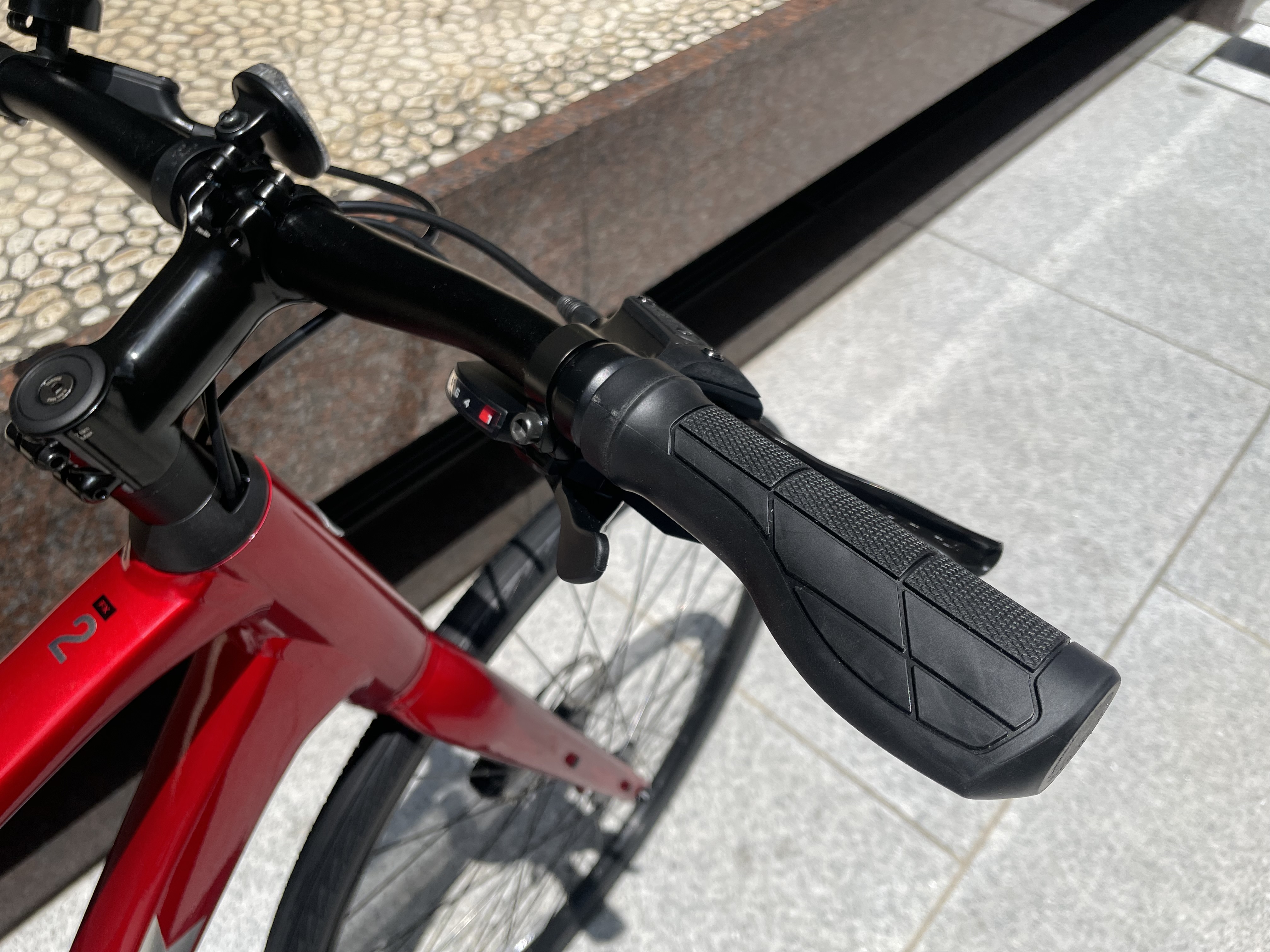 グリップのカラーが前作のグレーからオールブラック に変わっていて、よりエルゴノミックらしい形状に。ロングライドでも手や腕に負担がかかりにくく、快適に走行できます。