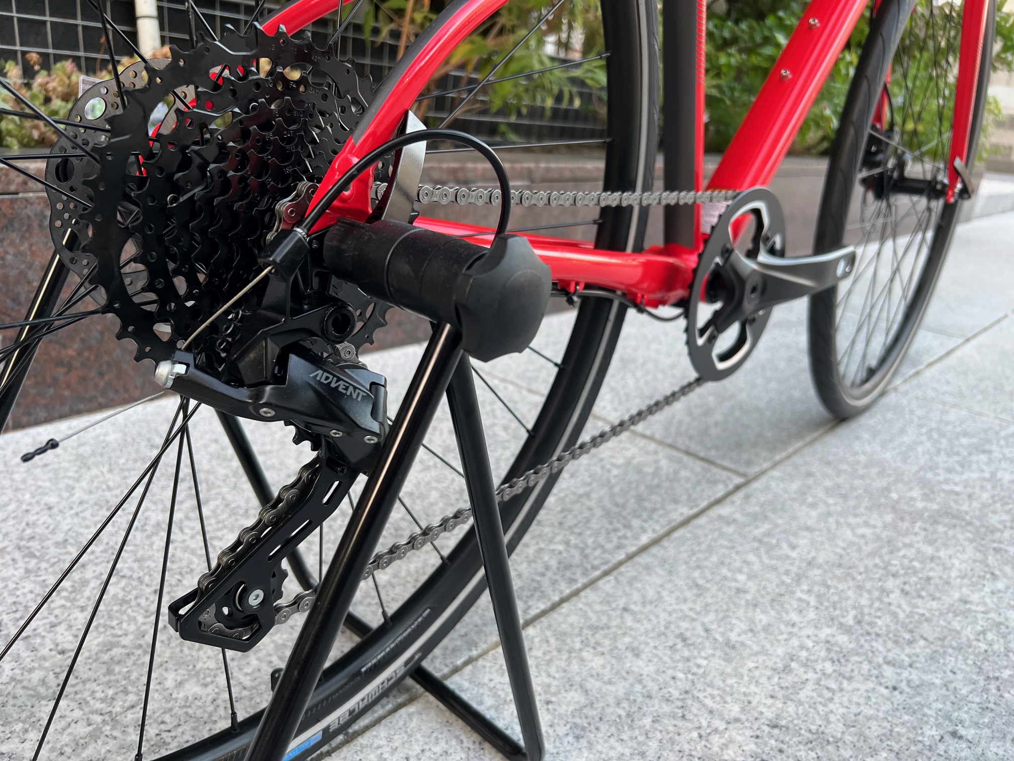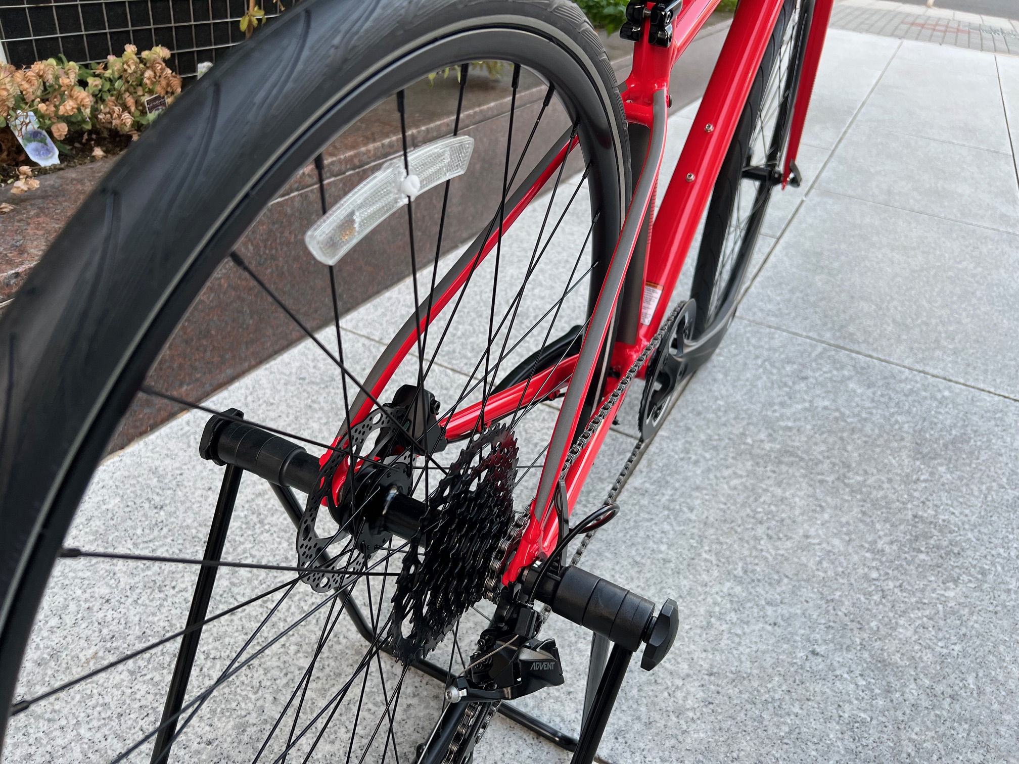サイクリングなどで長時間乗ってると握力が無くなってくるので、軽い力でしっかりとした制動力で止まってくれるディスクブレーキは心強い!