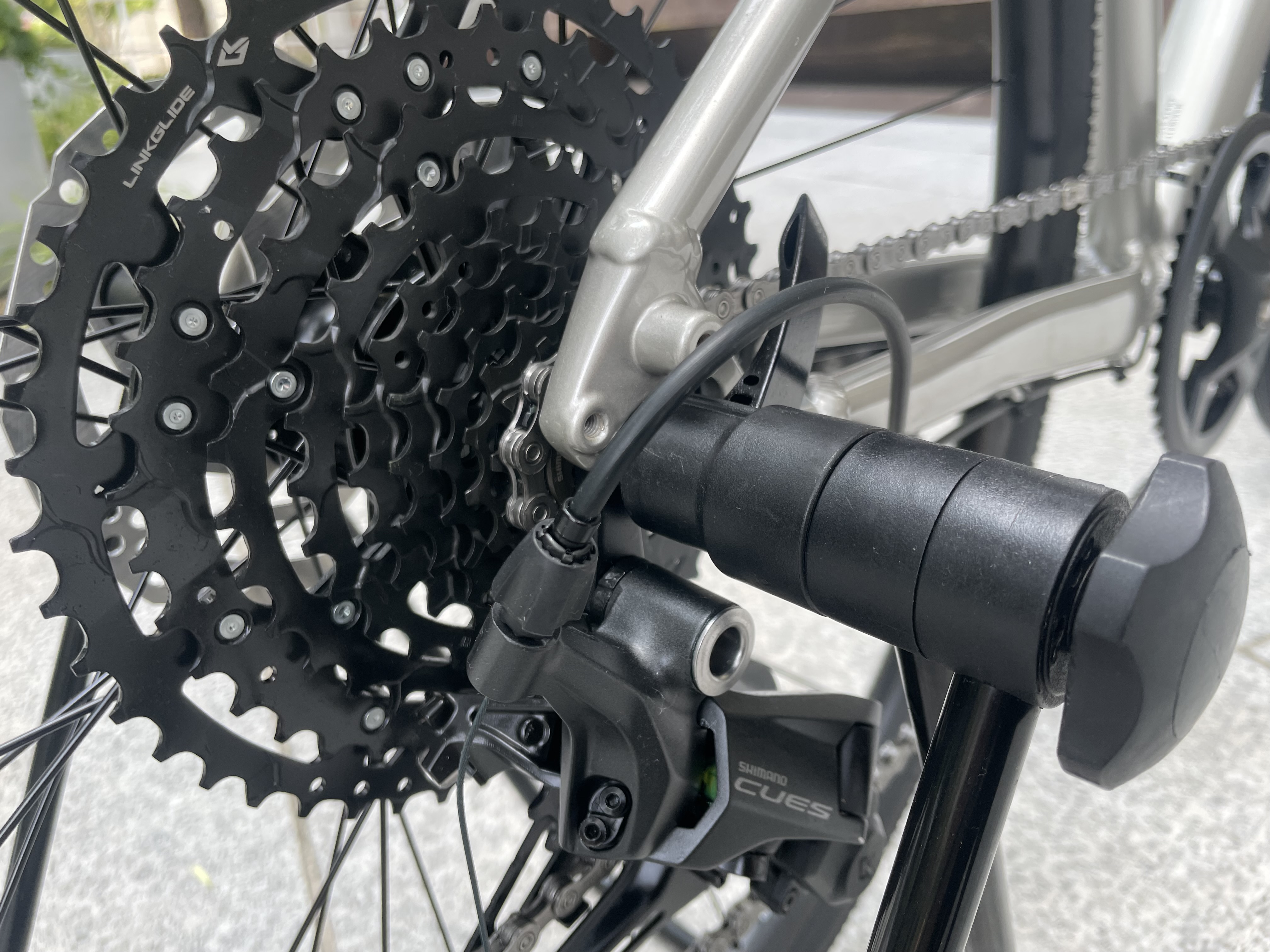 シマノ製『CUES』を搭載。フロントシングル、リア10速を搭載。フロントがシングルになることによってのメリットは、変速トラブルが少なくなること、軽量化。