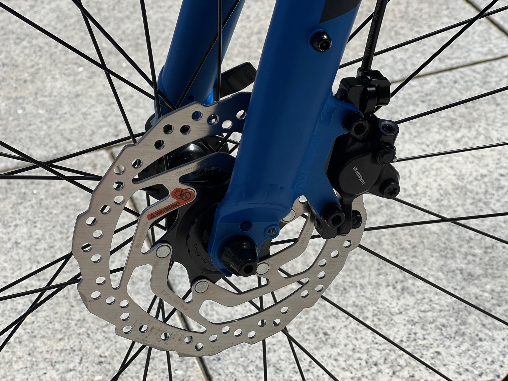 ブレーキはSHIMANO製の油圧式ディスクブレーキです。制動力が高いので、雨が降ってきても乗れますね!