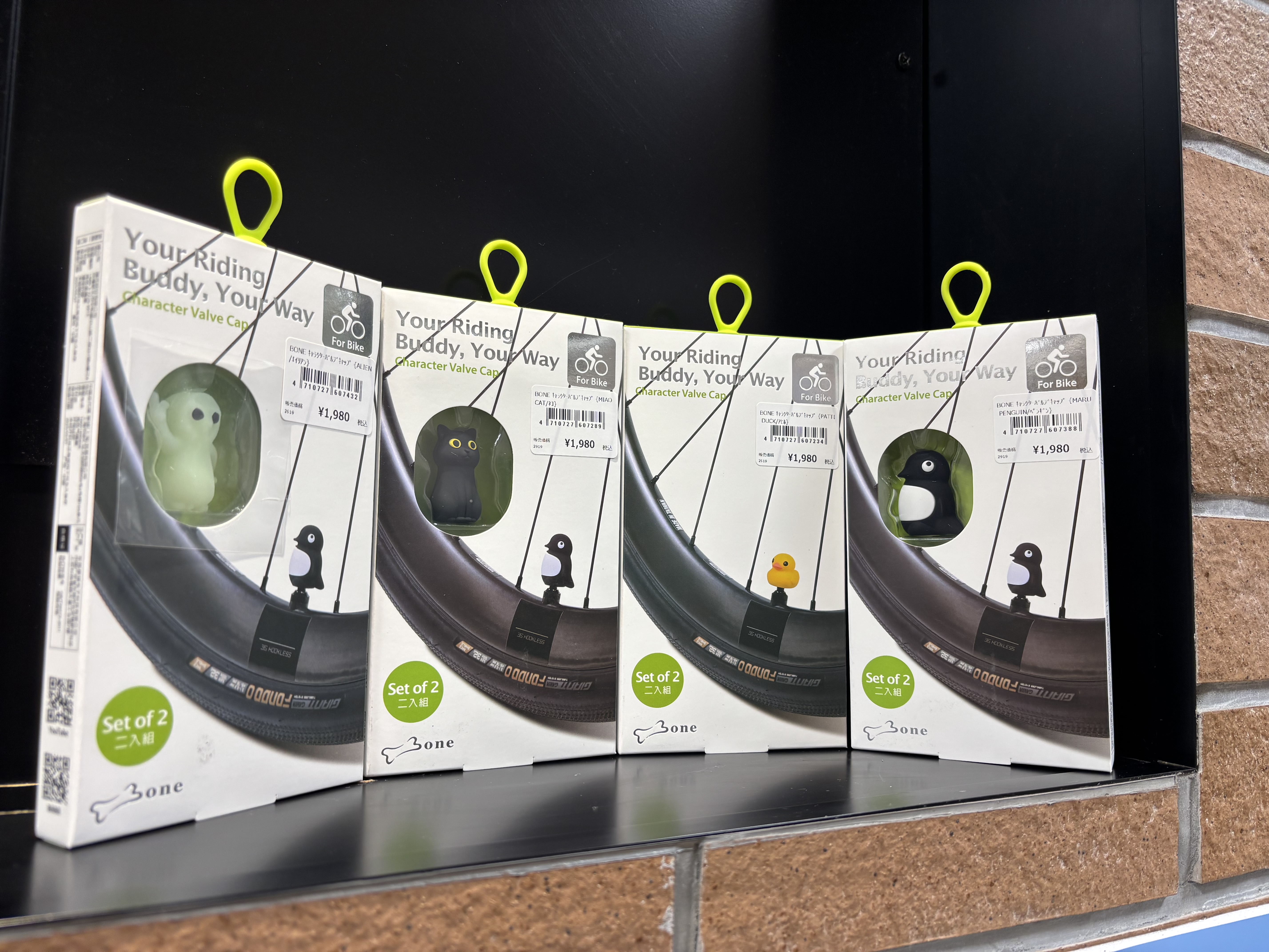 グルメライドをする時などにバチバチのエアロロードバイクに乗られている方は空気抵抗度外視でキャラクターバルブキャップにしていただくと、ギャップ萌えで個人的には大好きなので是非つけていただきたいです。