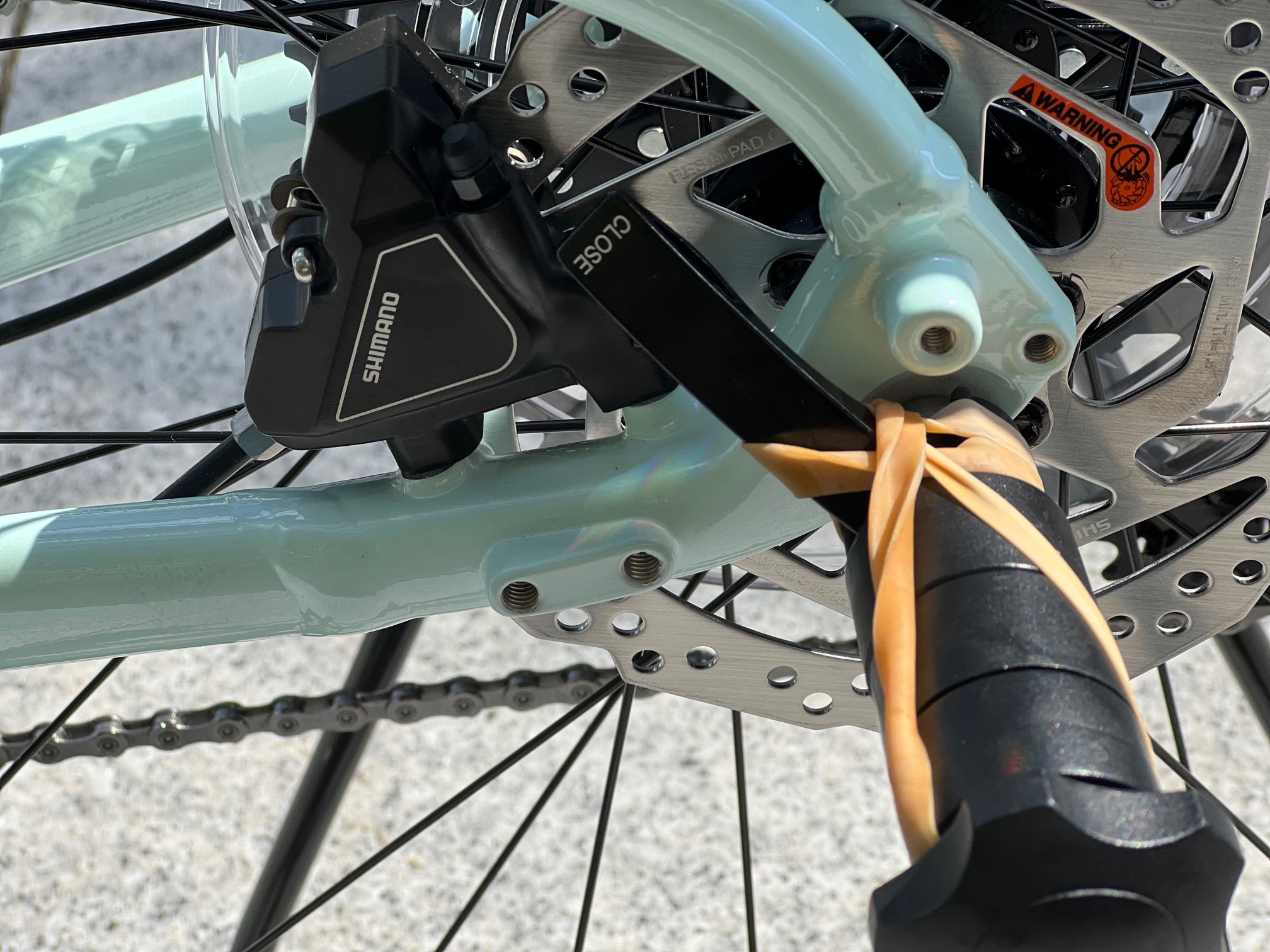 ブレーキはあらゆる天候下で高い制動力を発揮するシマノ社製油圧ディスクブレーキです。