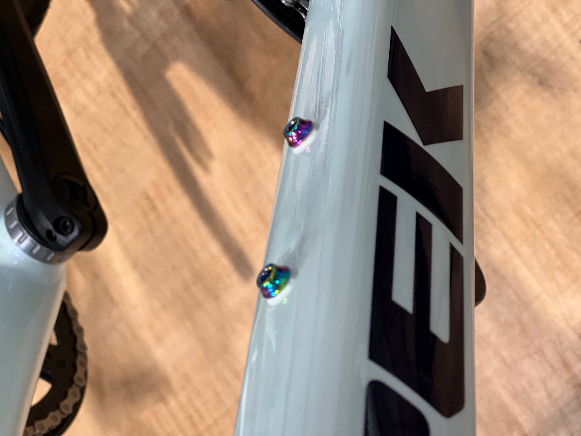 ミント要素は車体のカラーリングだとして、マジック要素はどこに?と考えていたところ、ボルトが光り輝いておりまして。