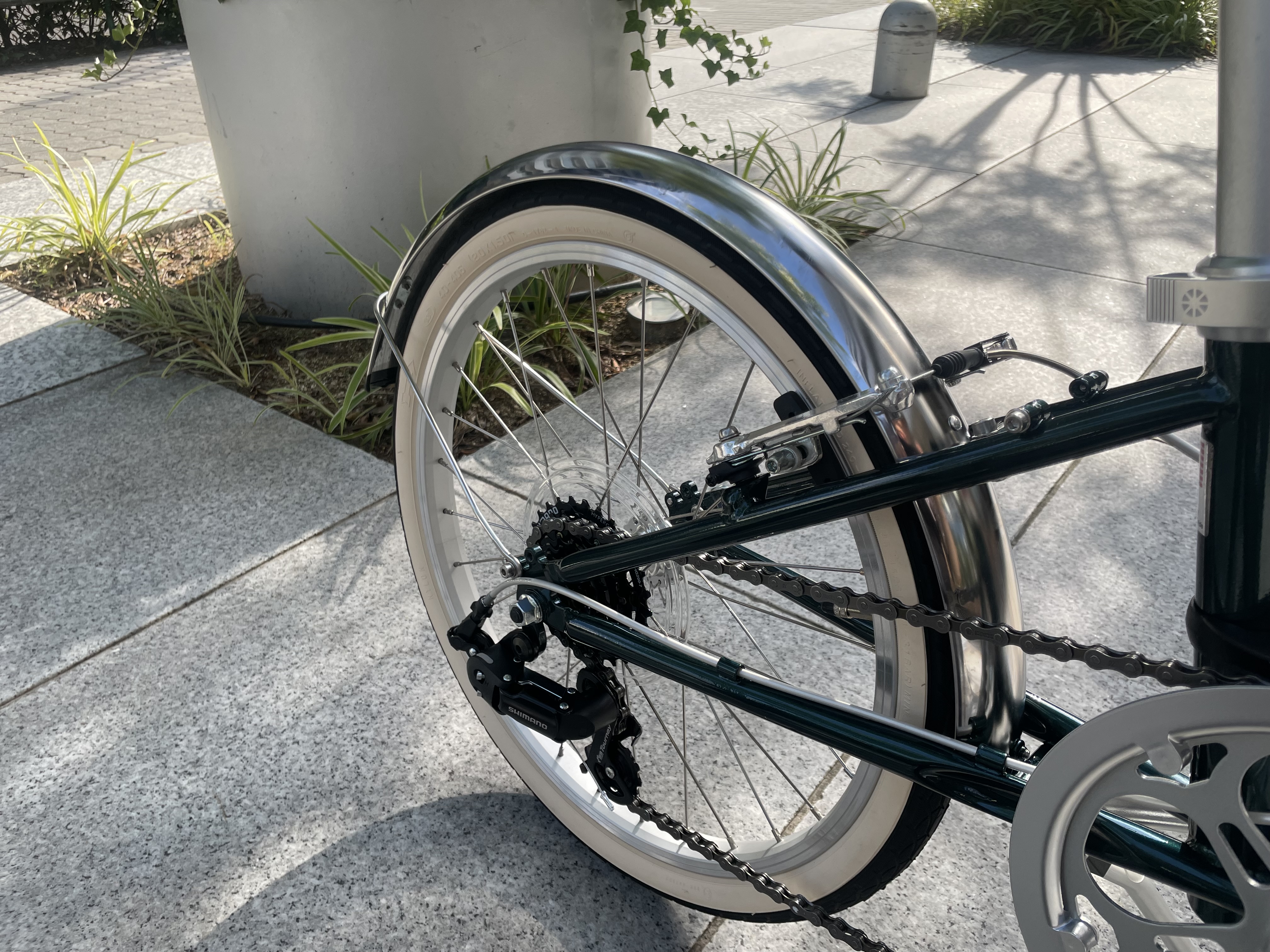 前後にしっかりした泥除けが搭載。 ぬれた路面での水の跳ね上がりを防ぐ。デイリーユースには非常に便利な装備です!