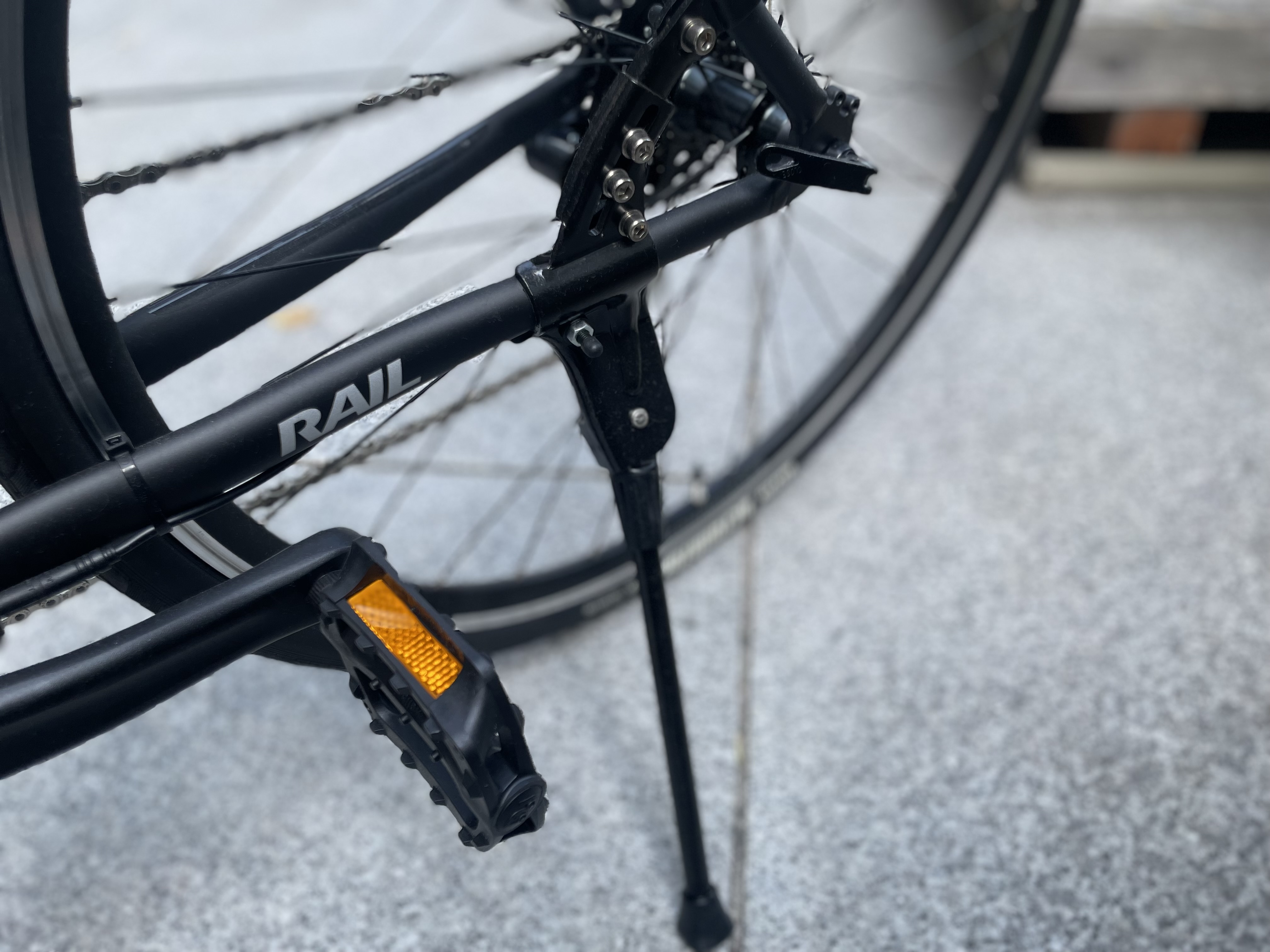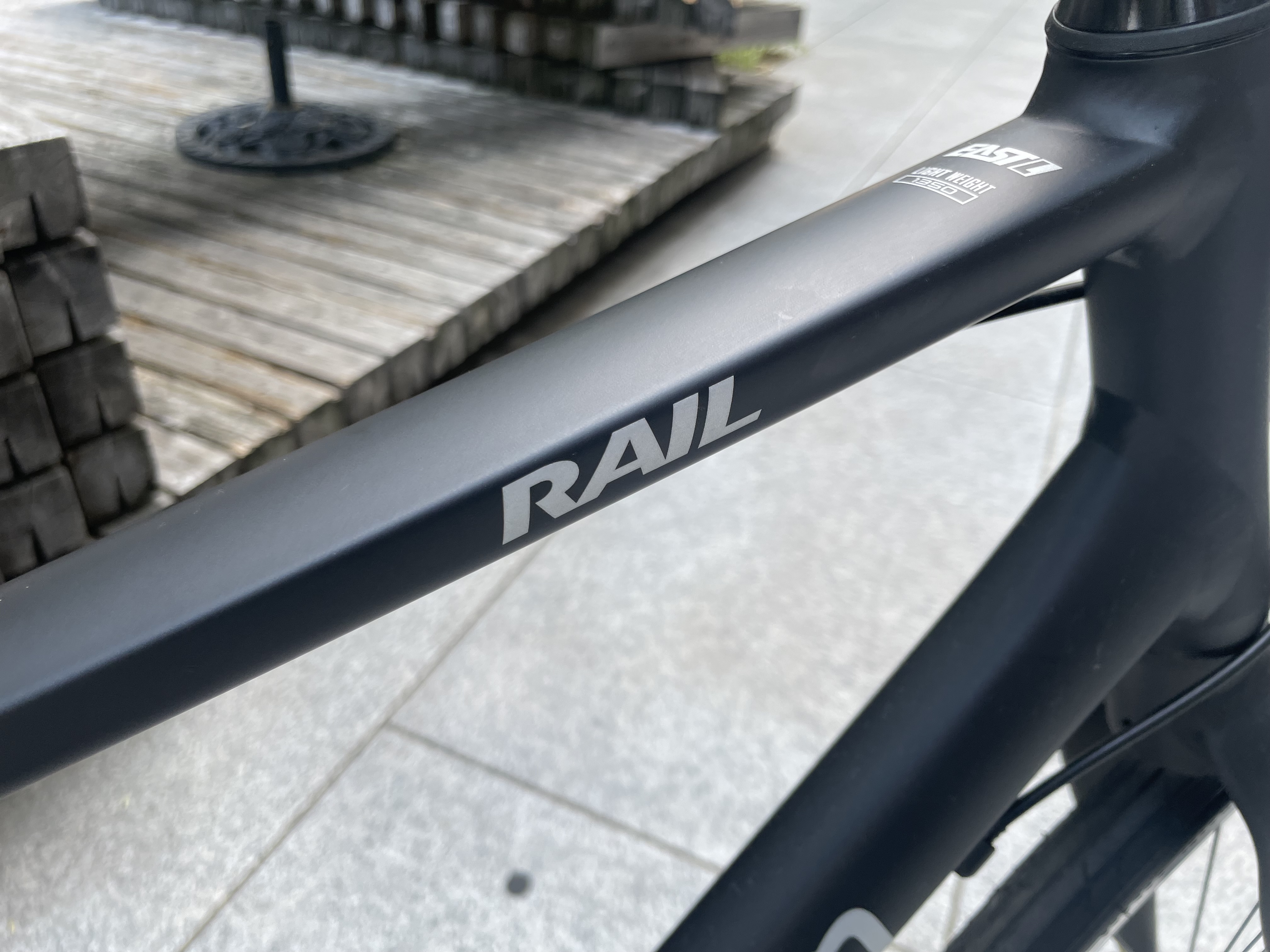 こういったクロスバイク型のE-bikeの重量は約20kgあるものが多いのですが、RAIL ACTIVE-eは15kgとクラス最軽量。元々の車体、RAIL ACTIVEが9.9kgと軽量なのでこの軽さが実現できています。