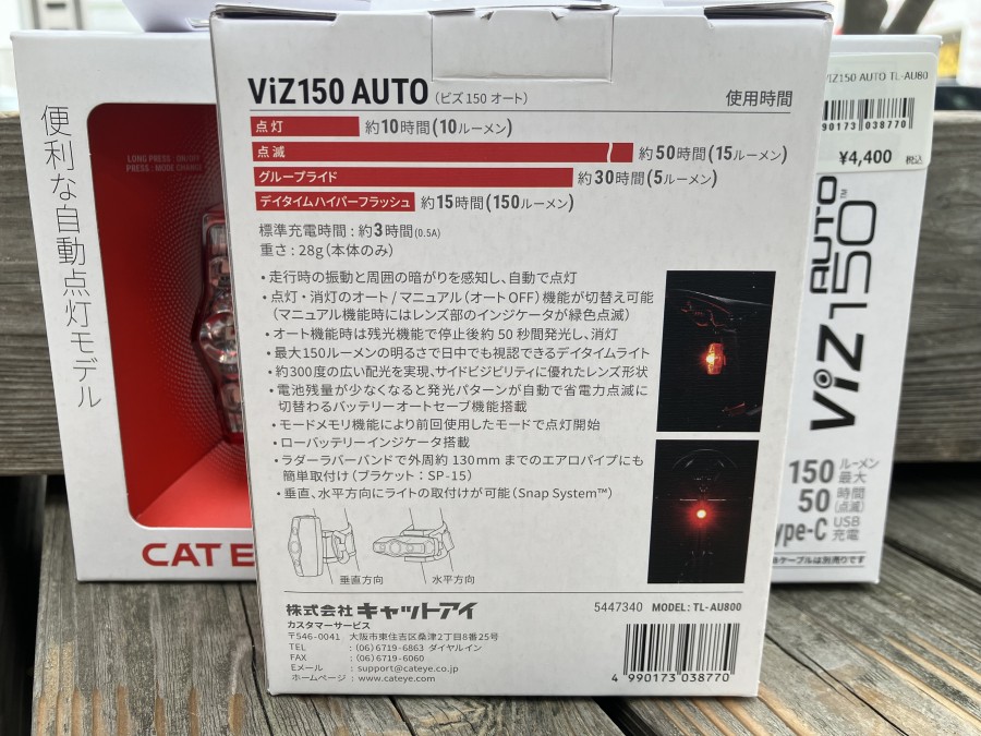 最近のCAT EYEの充電式ライトは大半がそうなのですが、こちらも例によってType-C対応です。