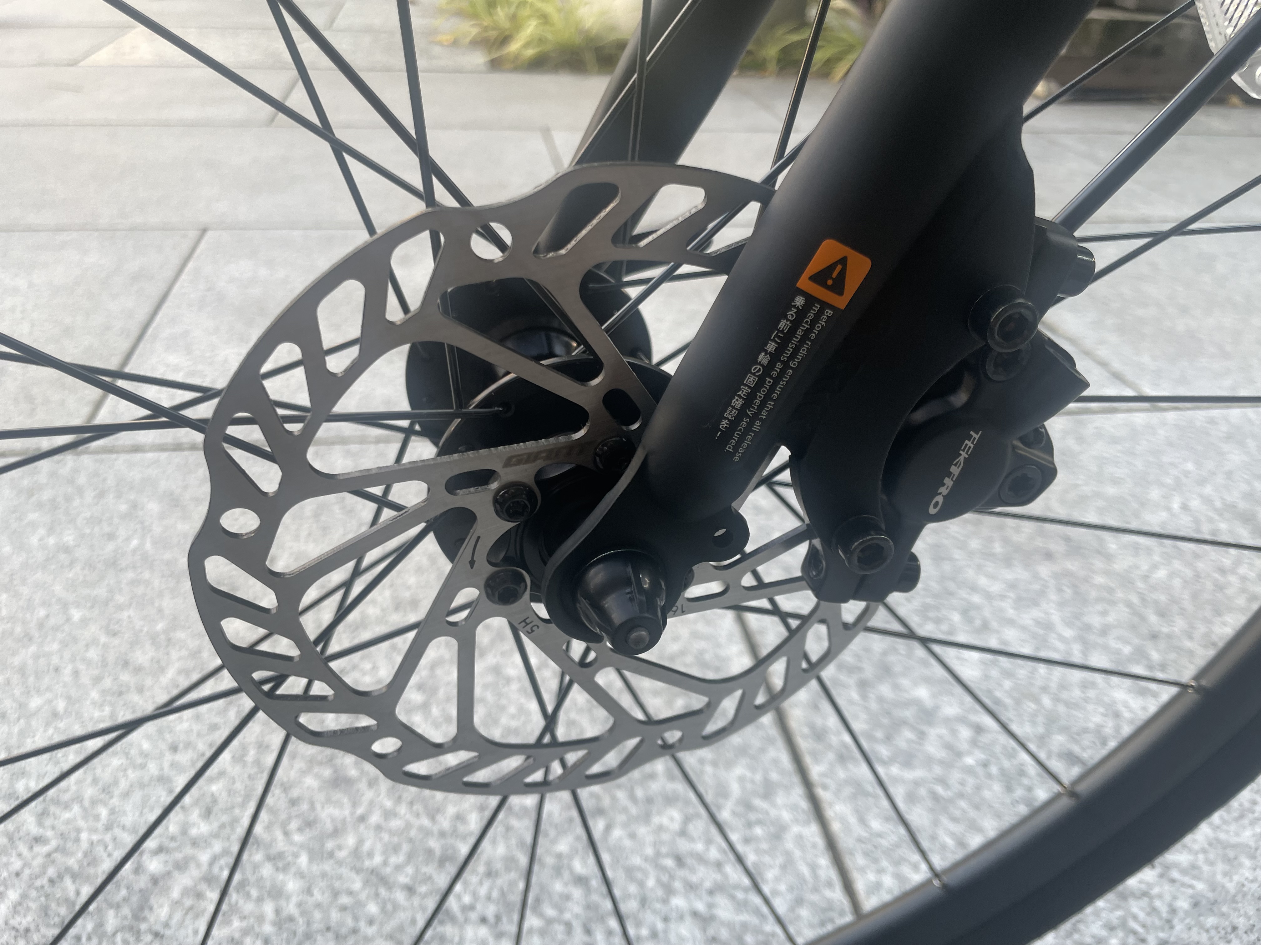 そしてブレーキは油圧式ディスクブレーキを搭載!軽いタッチでしっかりブレーキがかかることが特長です。雨の日でもしっかりブレーキがかけられるので、天候に左右されずに走行時も安心です。