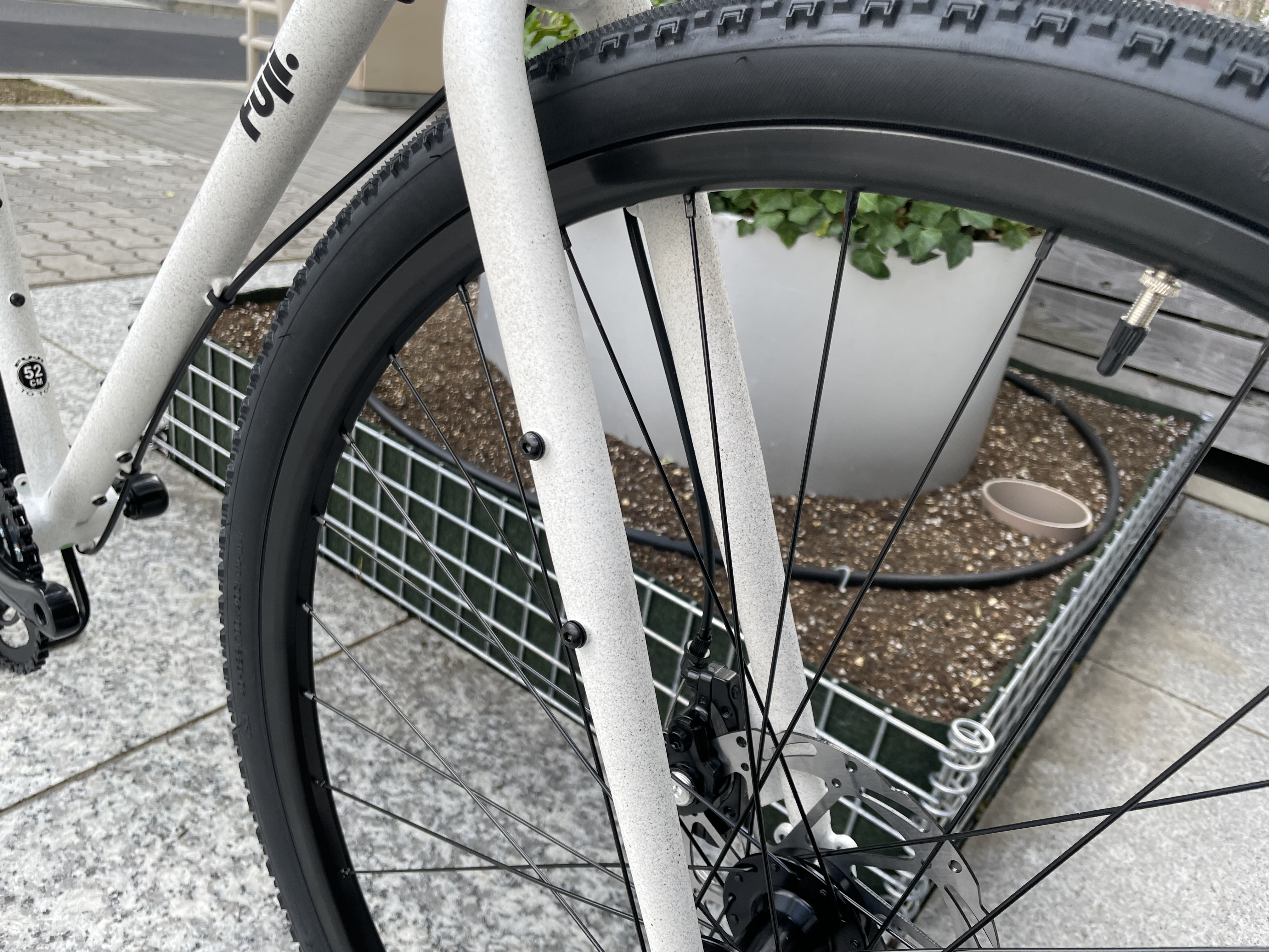 タイヤのサイズは700×40Cのかなり太めのグラベル系タイヤを装着!荒れた路面の走行も頼もしいです。