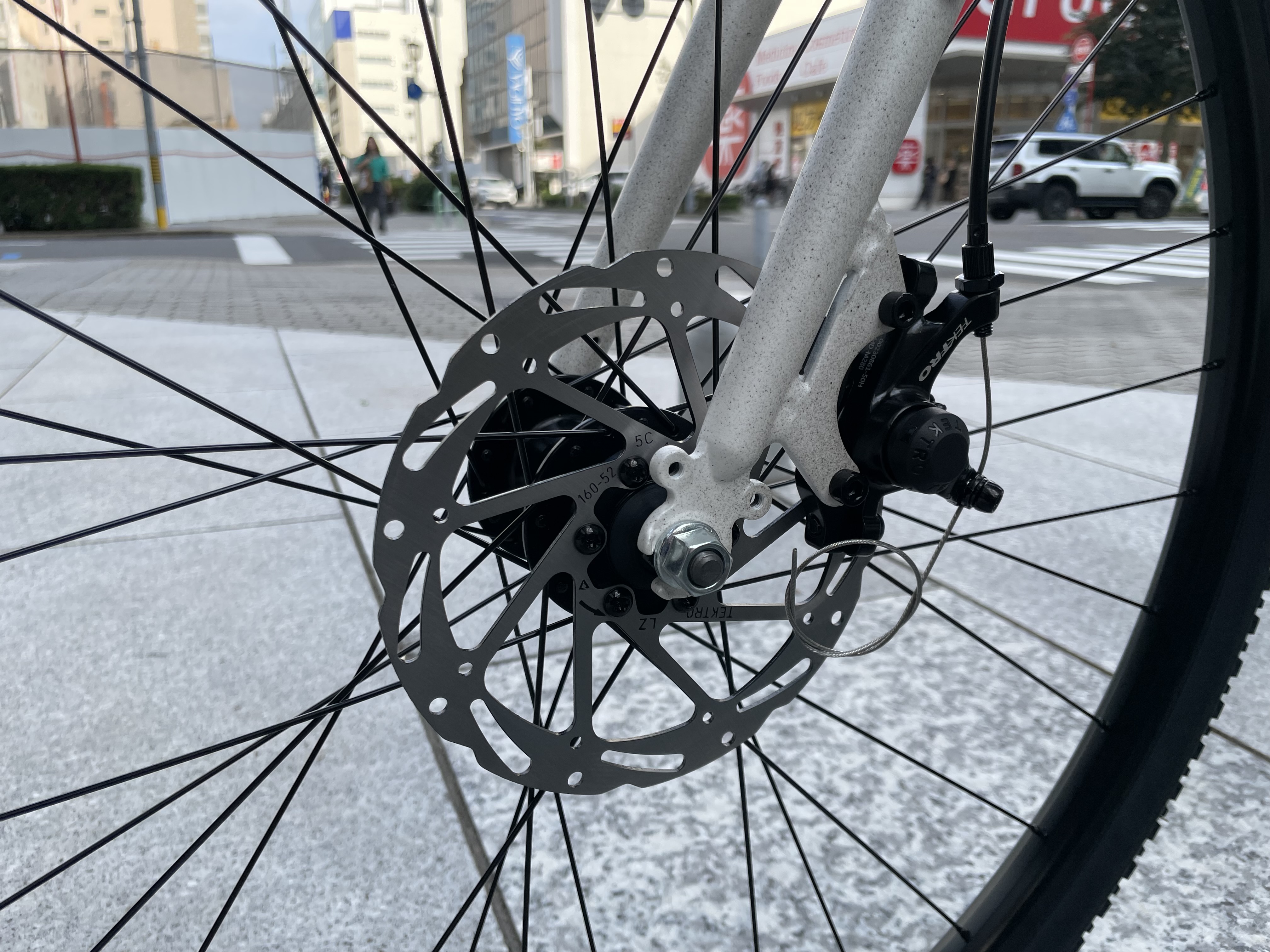 ピストバイクには珍しい機械式ディスクブレーキ搭載。