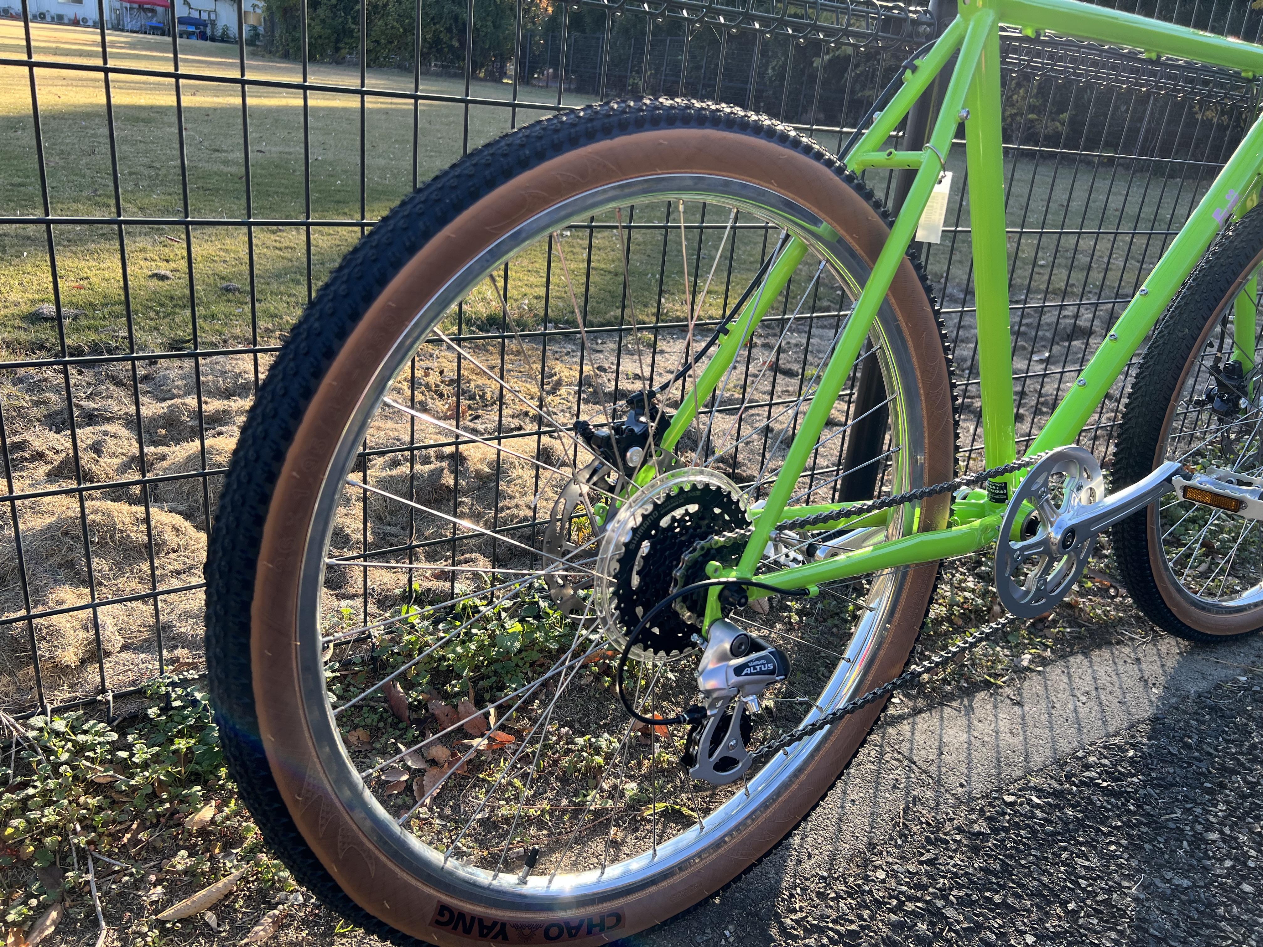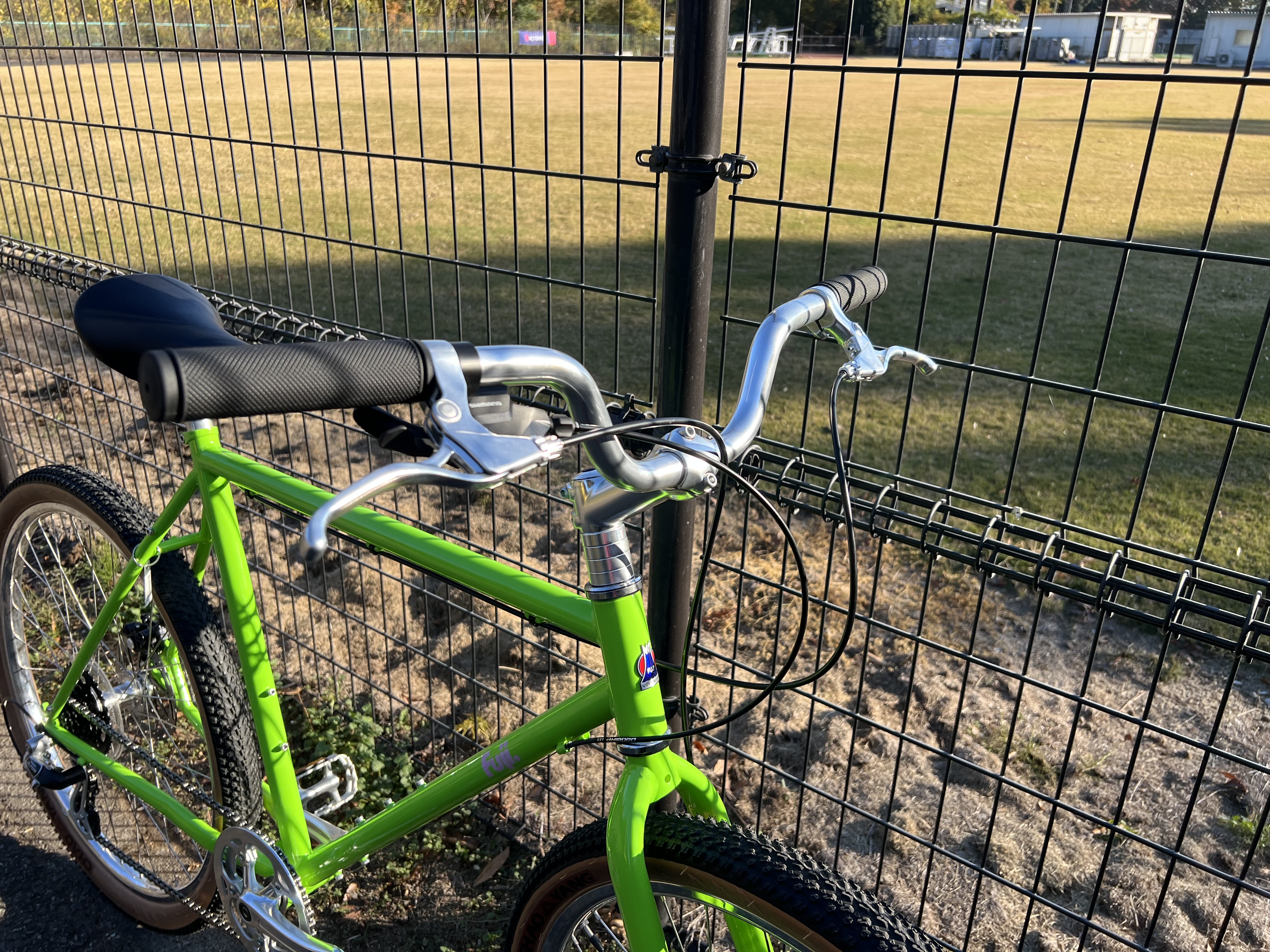 165cmで520mmが乗れるのか、少々不安でしたが、スタンドオーバハイトは何とかなったので乗りました!(私と身長が変わらない方だと440mmや480mmのほうがいいかと)