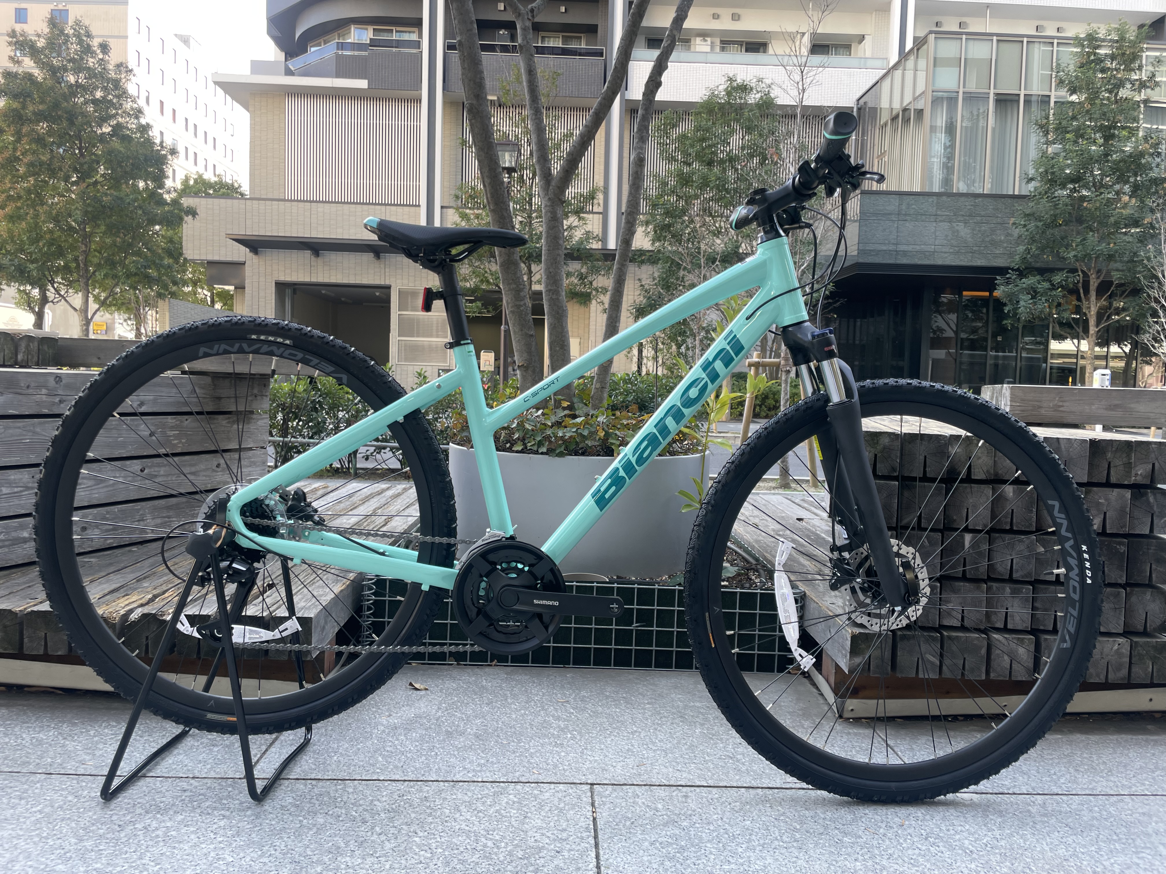 大人気のC-SPORTシリーズにフロントサスペンションが搭載。MTBほどじゃなくていいけど、タイヤが太目で乗り心地の良いクロスバイクをお探しの方にはピッタリです。カラーはチェレステ、サイズは43で限定されますが欲しい方は絶対いるはず!!