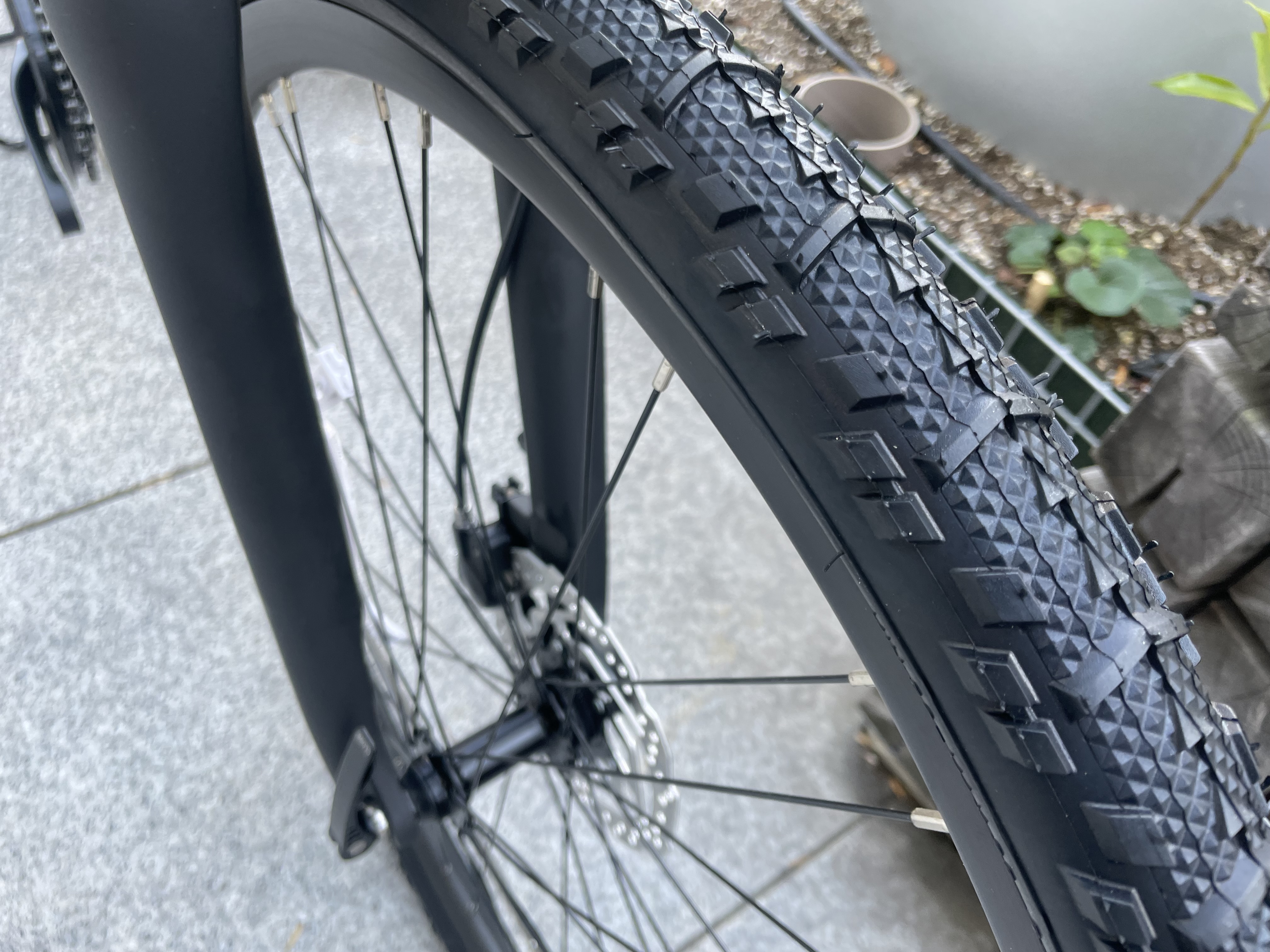 ↑C SPORT2のタイヤは700×38C。スリックタイヤなので、街乗りピッタリ。舗装路なら速く走れますが、砂利道はあまり得意ではありません。
