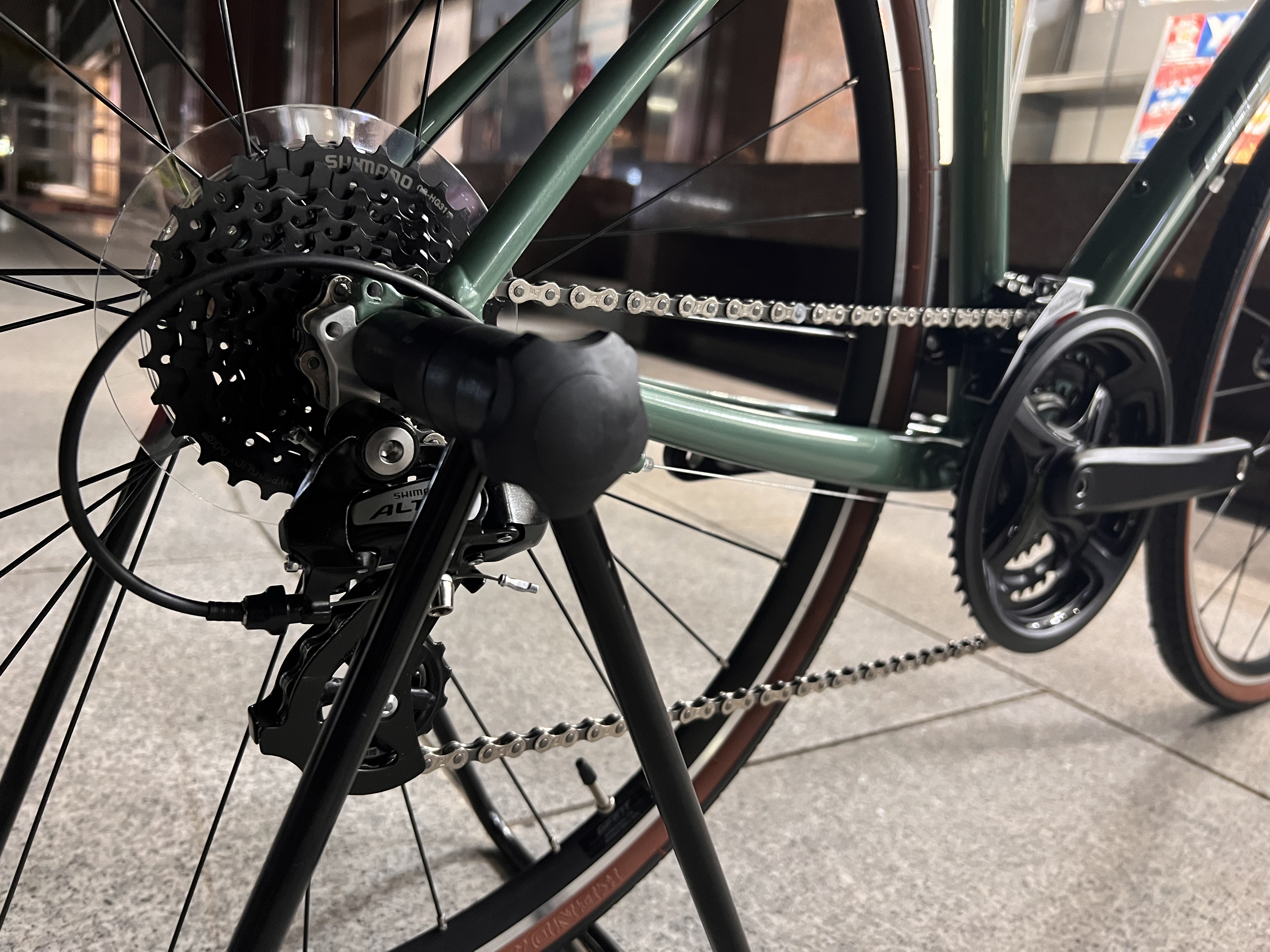3×8の24段変速。信頼性と操作性の高いSHIMANO製コンポーネントです。