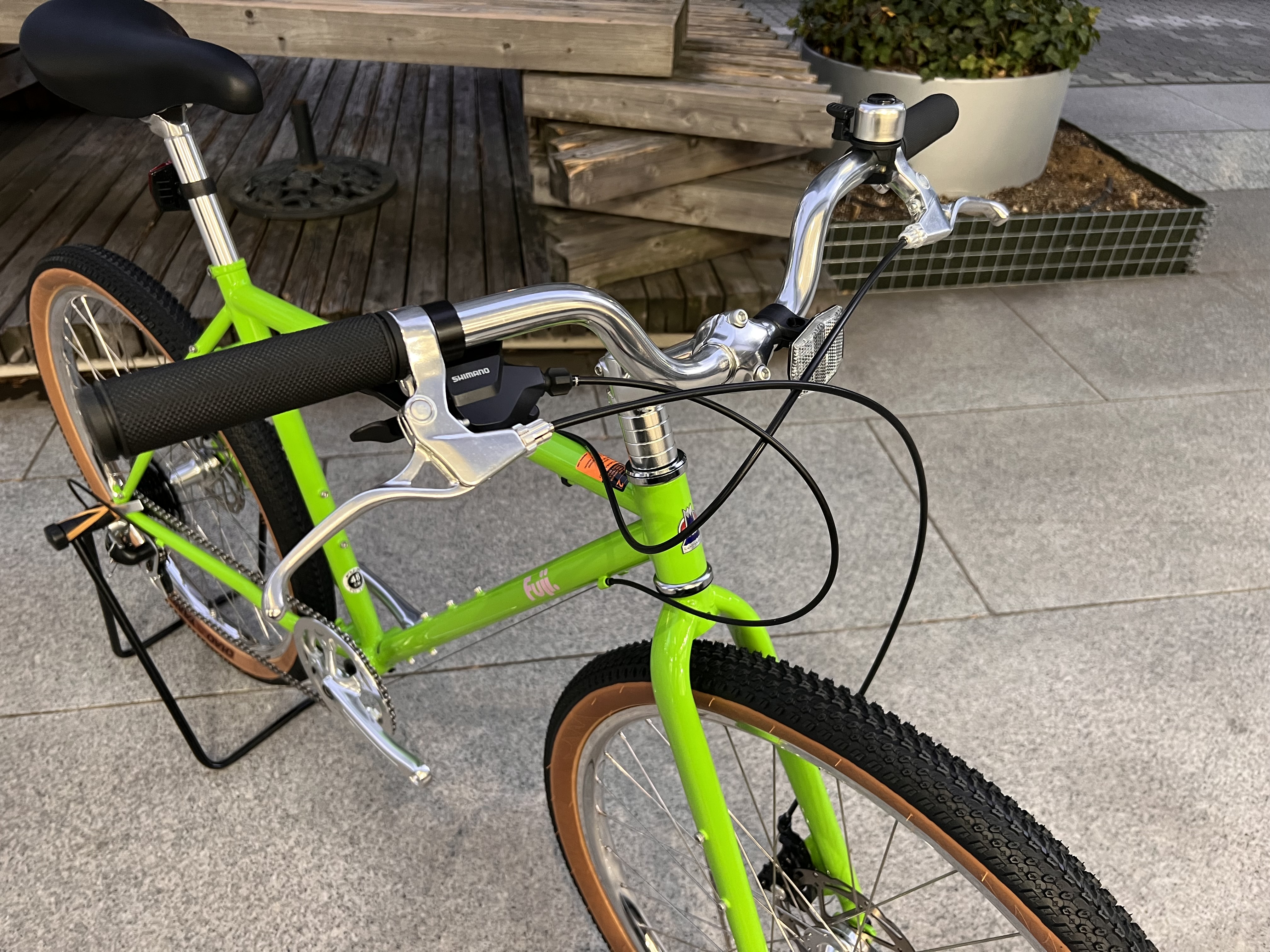 ハンドル、ブレーキレバーとシルバーなので統一感あって、素敵ですよね!