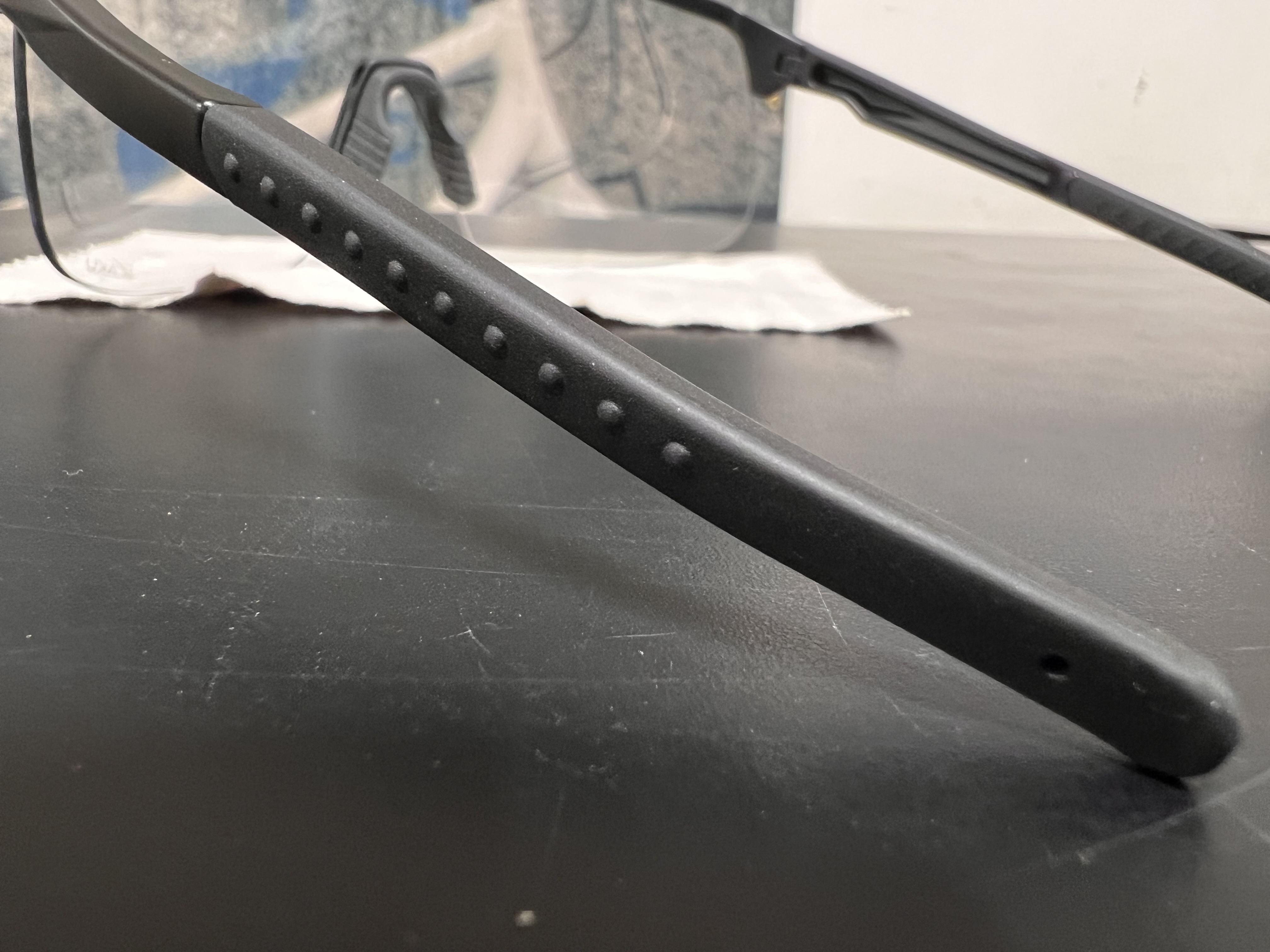 可変式ノーズとつるの部分が可動することにより、ピッタリとしたつけ心地となり、アイウェアずり落ち問題がないという点がとてつもなく良い!