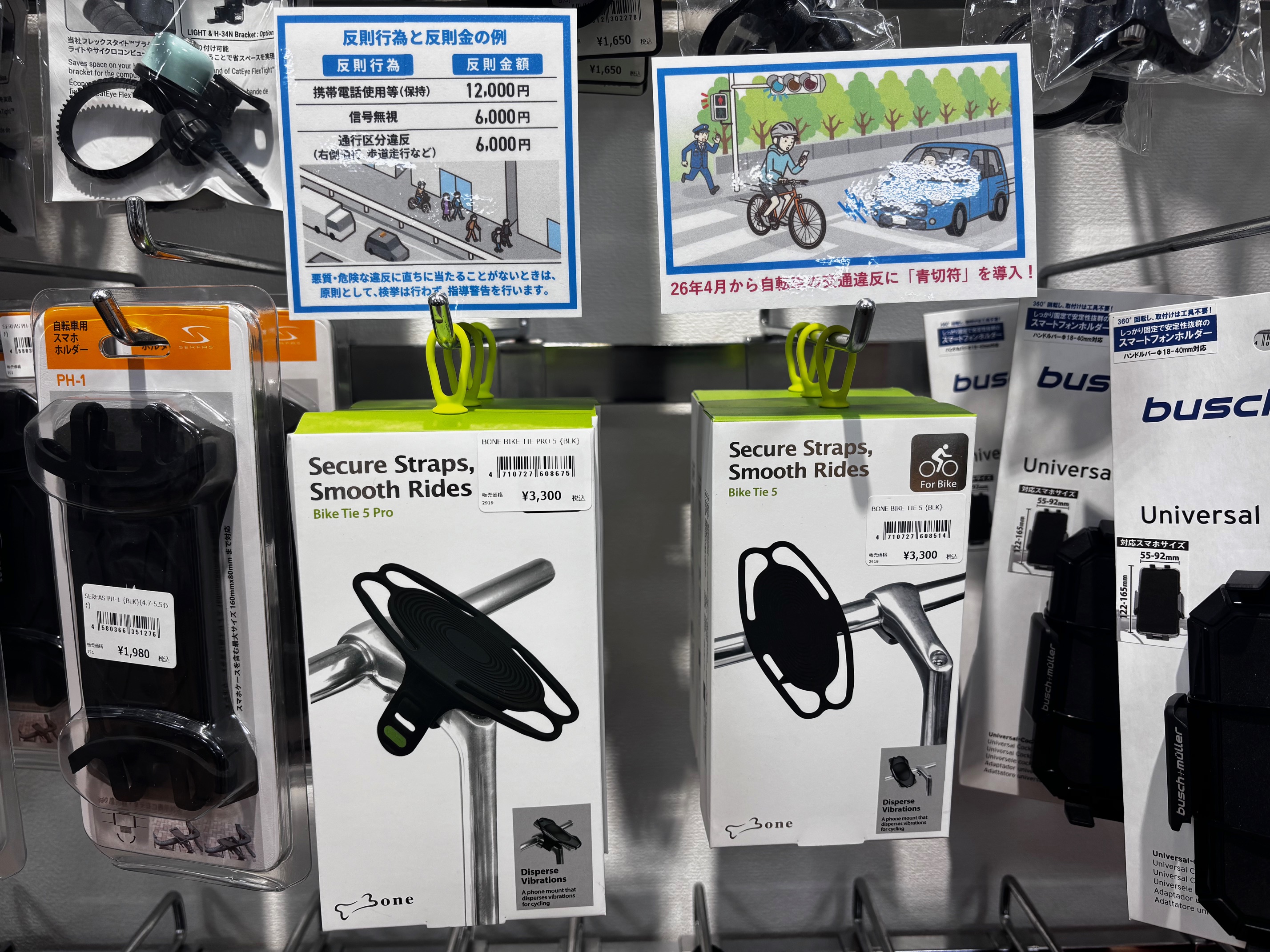 スマートフォンは手に持って走行するだけで違反になるので、ナビなどのアプリを使いたい方はつけておくと便利ですね。
