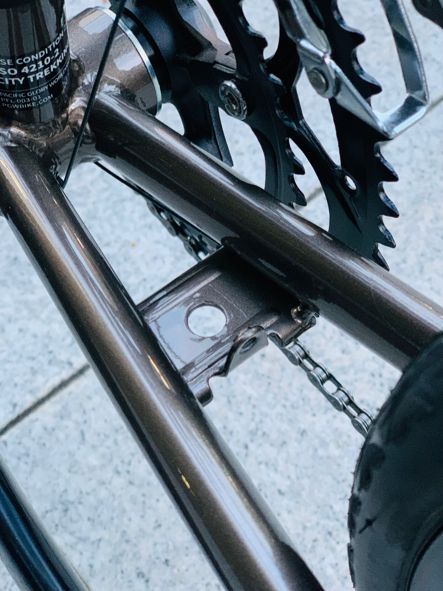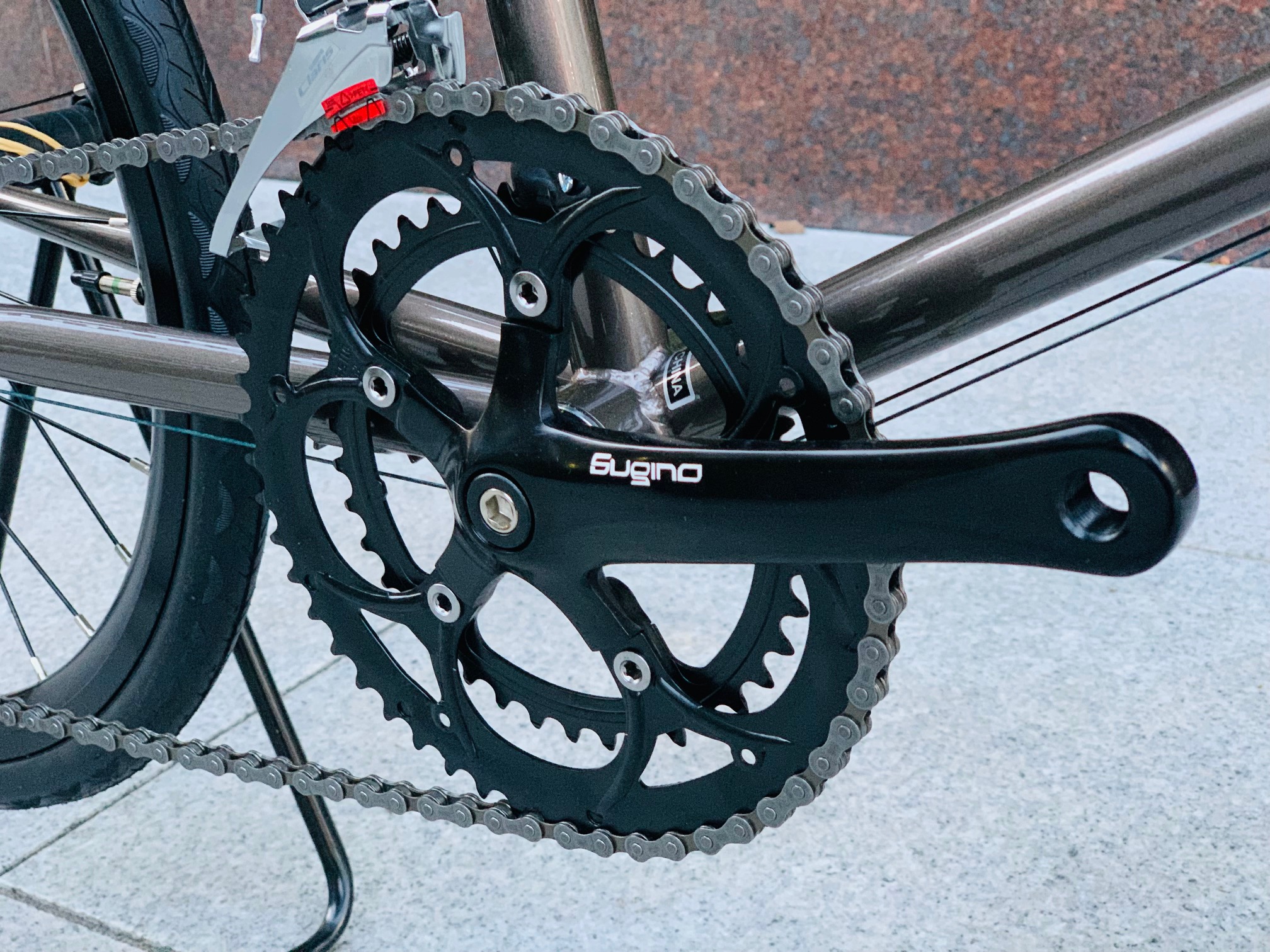 クランクはSUGINOを搭載。高い剛性はスムーズなペダリングと効率の良いパワー伝達を両立します。