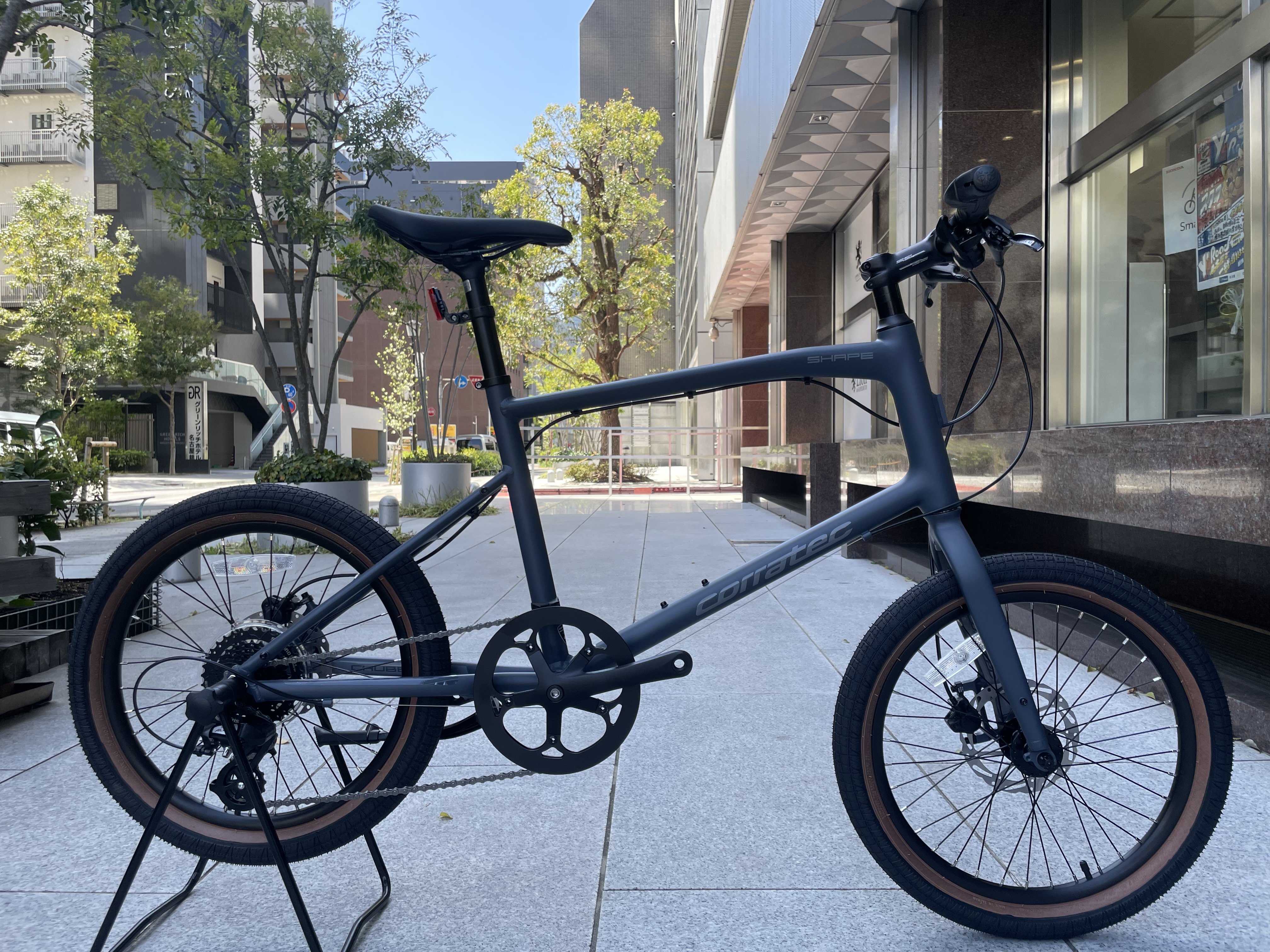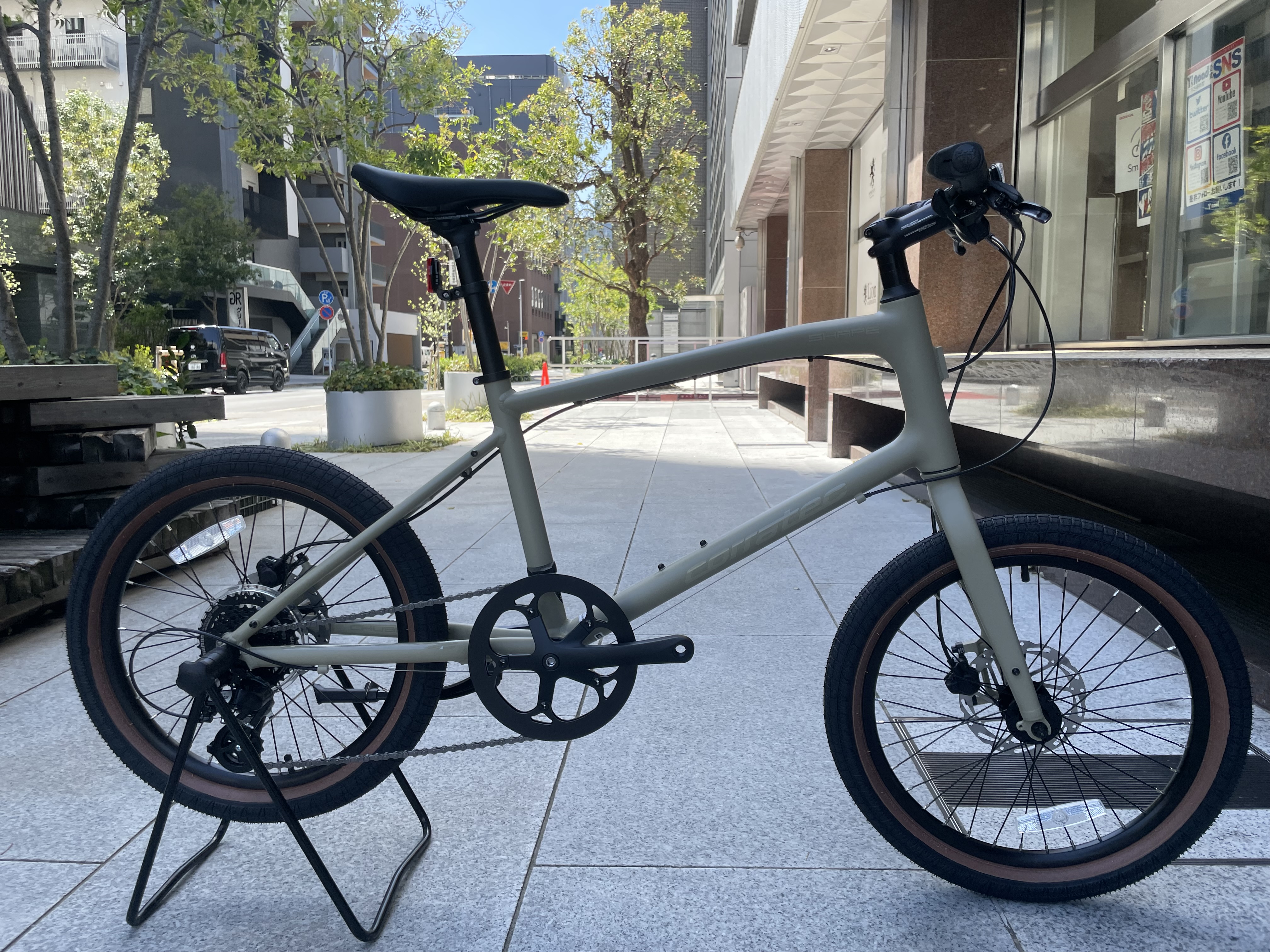 一般的なミニベロよりも遥かに太いこのタイヤが、路面の段差をふわっと吸収。小径車特有のクイックな挙動を抑え、まるで大きなバイクに乗っているかのような安定感をもたらしてくれます。お洒落なサイドタンカラーのタイヤは、マットな質感のフレームとも相性抜群です。
