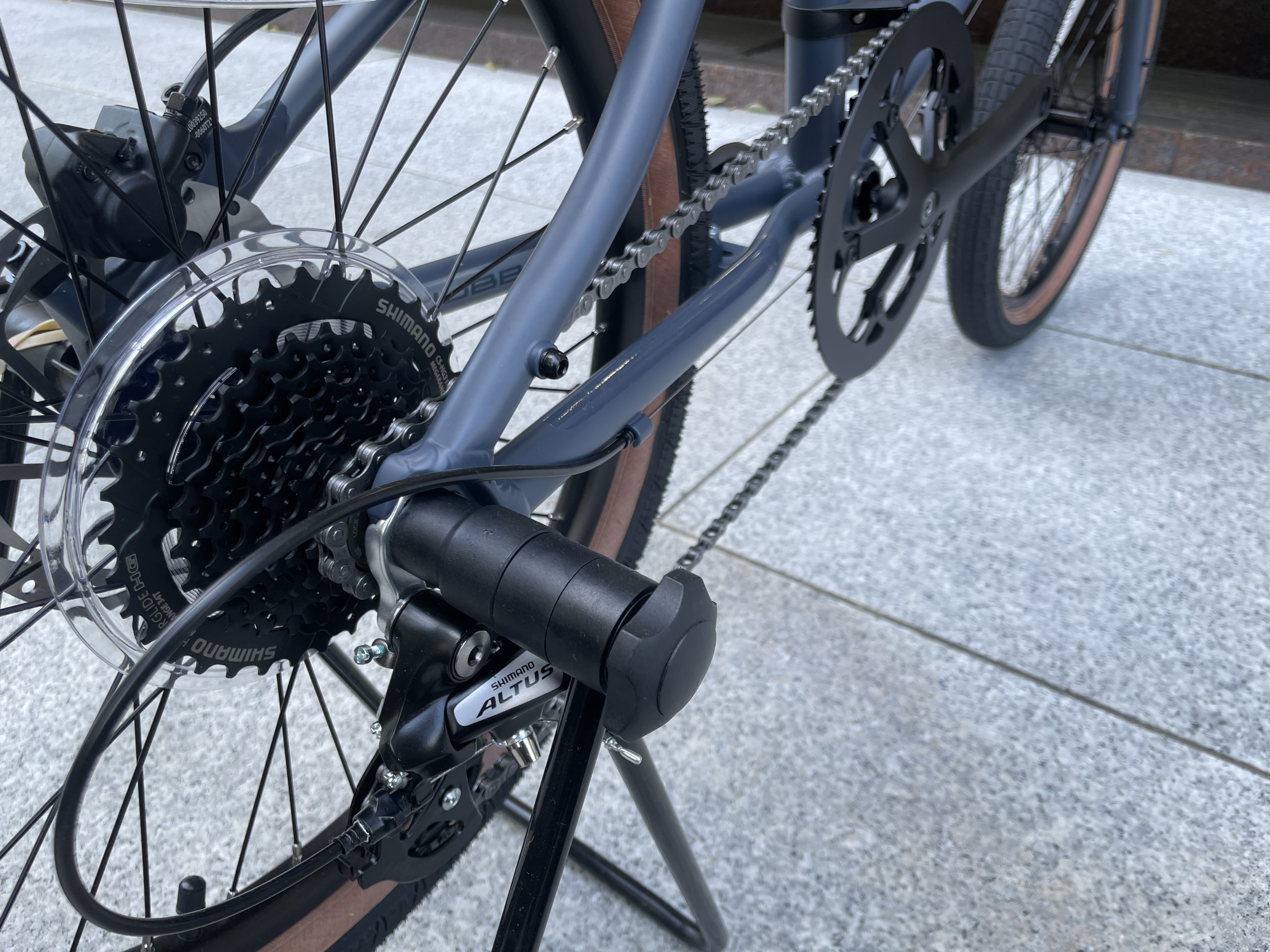 変速機は信頼のシマノ製8段。スポーティーな走りから、のんびりしたお散歩まで幅広くこなします。カラーリングは2色。どちらも普段着にも馴染む優しい色合いで、カフェ巡りや通勤をより楽しく彩ってくれるはずです。