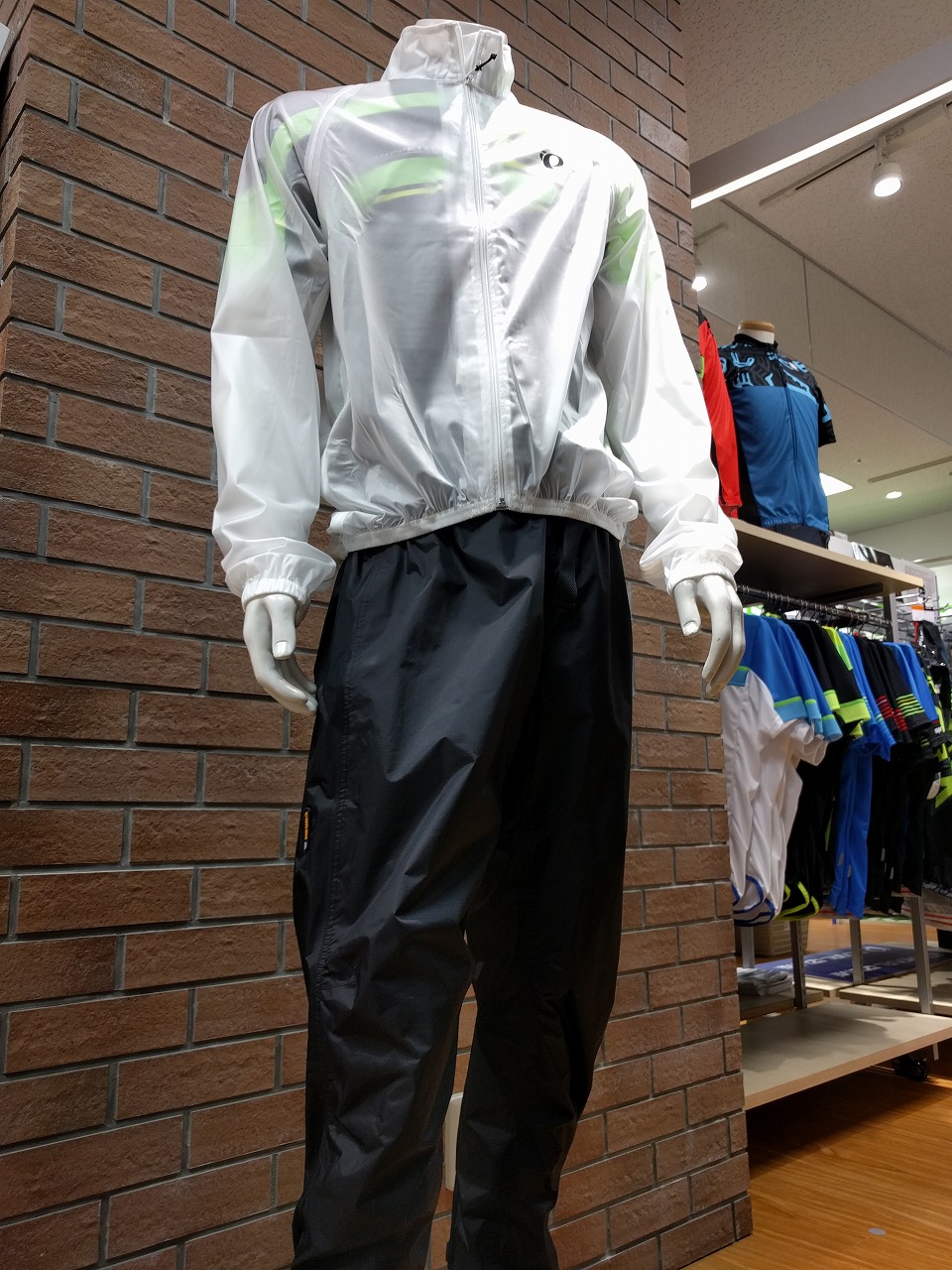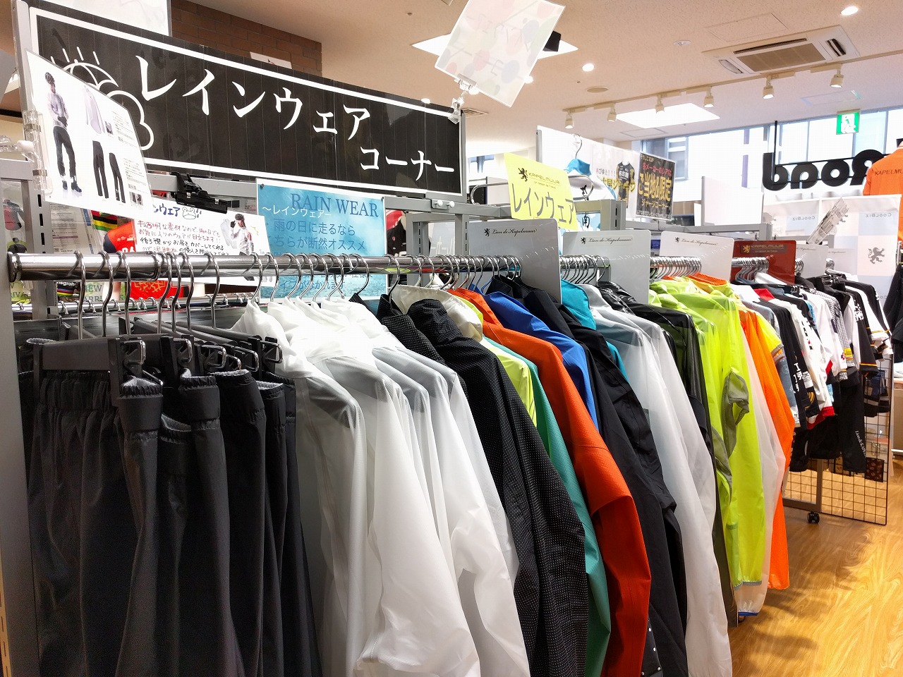 ウェア館入口付近でレインウェアコーナー展開してます