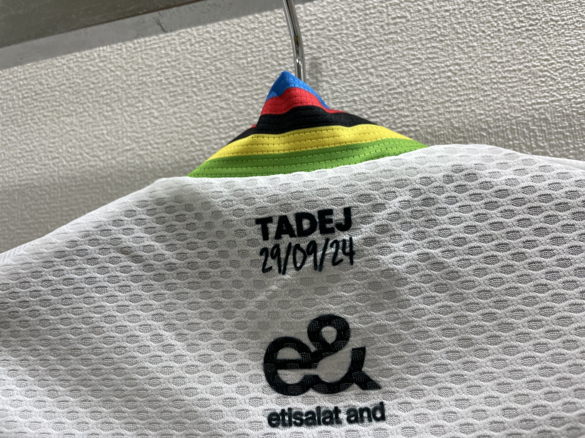 2025年はこのデザインで走りますので、ツールやブエルタの様なステージレースだと、すぐに総合リーダージャージに変わっちゃうかもしれませんが、今年しっかりと狙っていきたいと公言しているクラシックレースは常にこのデザインになりますので、ファンなら絶対手に入れときたいレアアイテムですよね♪