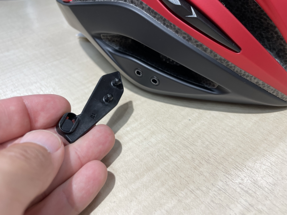 取り付け方としては、ヘルメットサイドにある2個の穴にアタッチメントを取り付けていただくだけ!