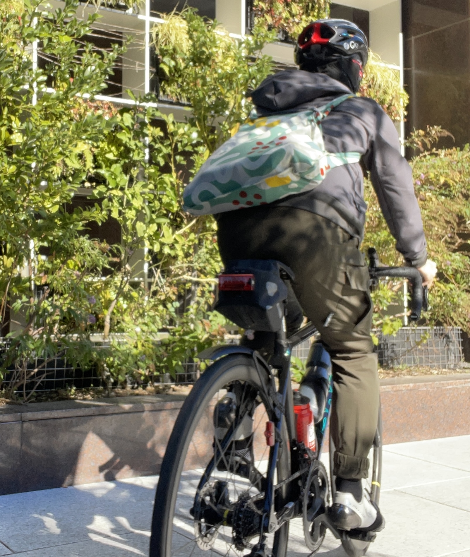 ちなみに、本格的なバックパックと違って、肩からは多少ずり落ちがあったり、ダンシングで身体を降るとバッグも釣られて動いたりと安定感はありませんが、そもそも買い物をした状態で激しい動きをしてしまったら中身が台無しになるので、基本的には問題が無いかと思われます。