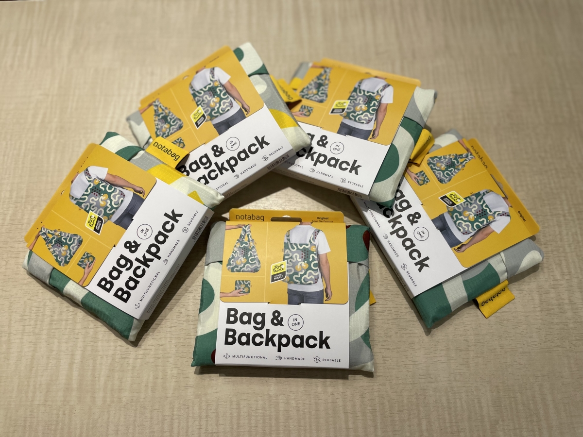 そういった危険を鑑みて、『買い物袋がバックパックだったならば』という発想から、シンプルな動作で『トートバッグから持ち運びに便利なバックパックに変わる』notabag(ただのカバンではない)が生まれました。