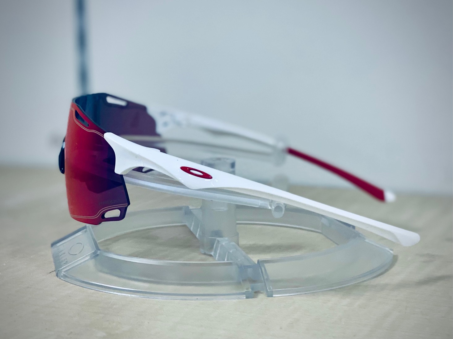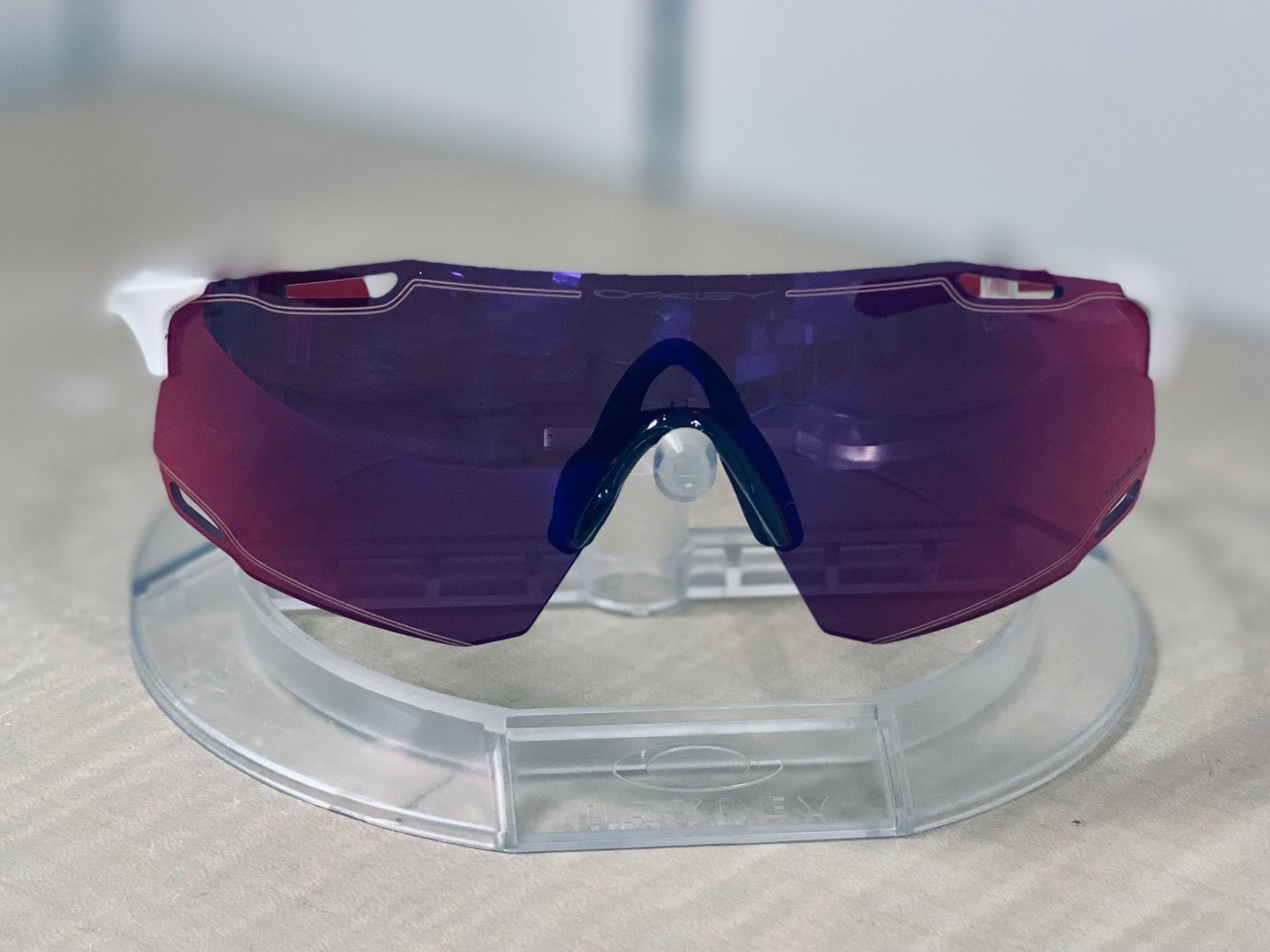 なお実測重量は23gで、OAKLEYラインナップの中ではトップクラスに軽いです。先に入荷したCYBR ZEROが22gですから、視野をここまで広くとって1gの重量増に抑えてるのはすごい。バイクもランもカバーできるのでトライアスロン用としてもオススメです。