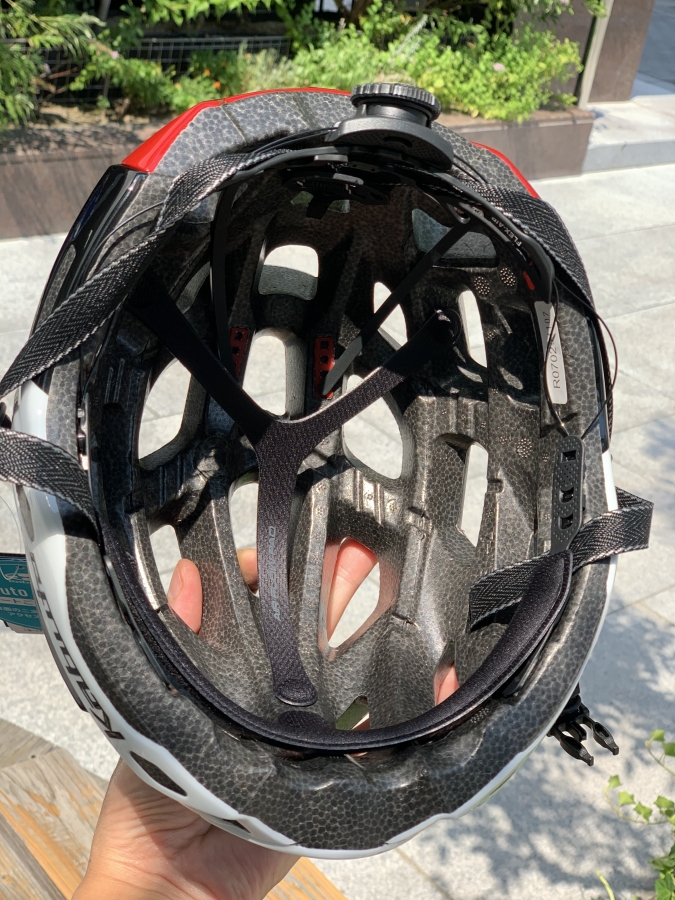 ヘルメット内部のエアフローパッドは抜群の通気性で熱もこもりにくい仕様。