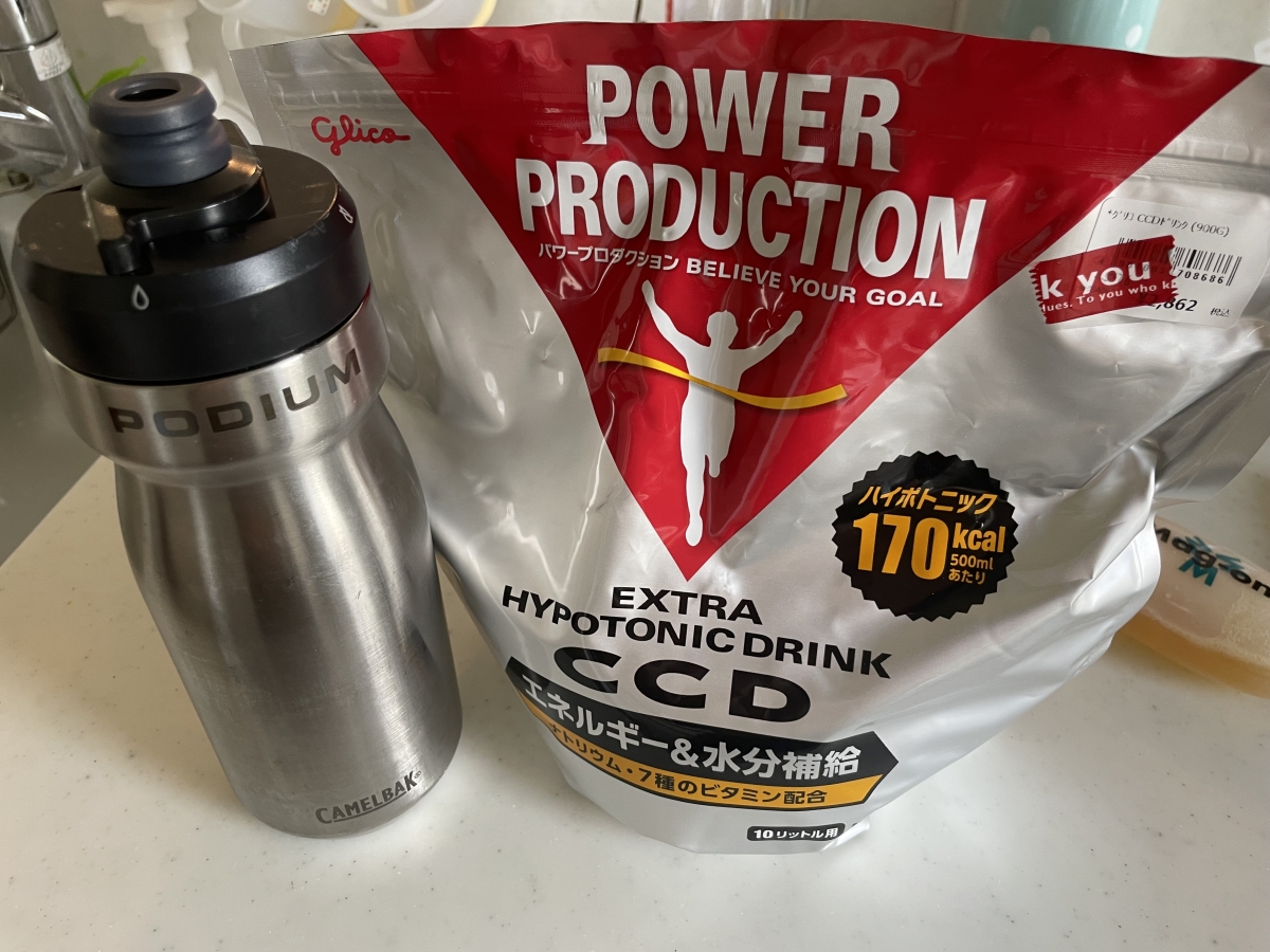 ツール・ド・ふくしま140kmに向けて、琵琶湖タッチの160kmぐらいを想定しつつ、レースと違ってコンビニ休憩もするので脚攣り対策としてのMag-onは2個を専用ボトルに移し替えておきます。