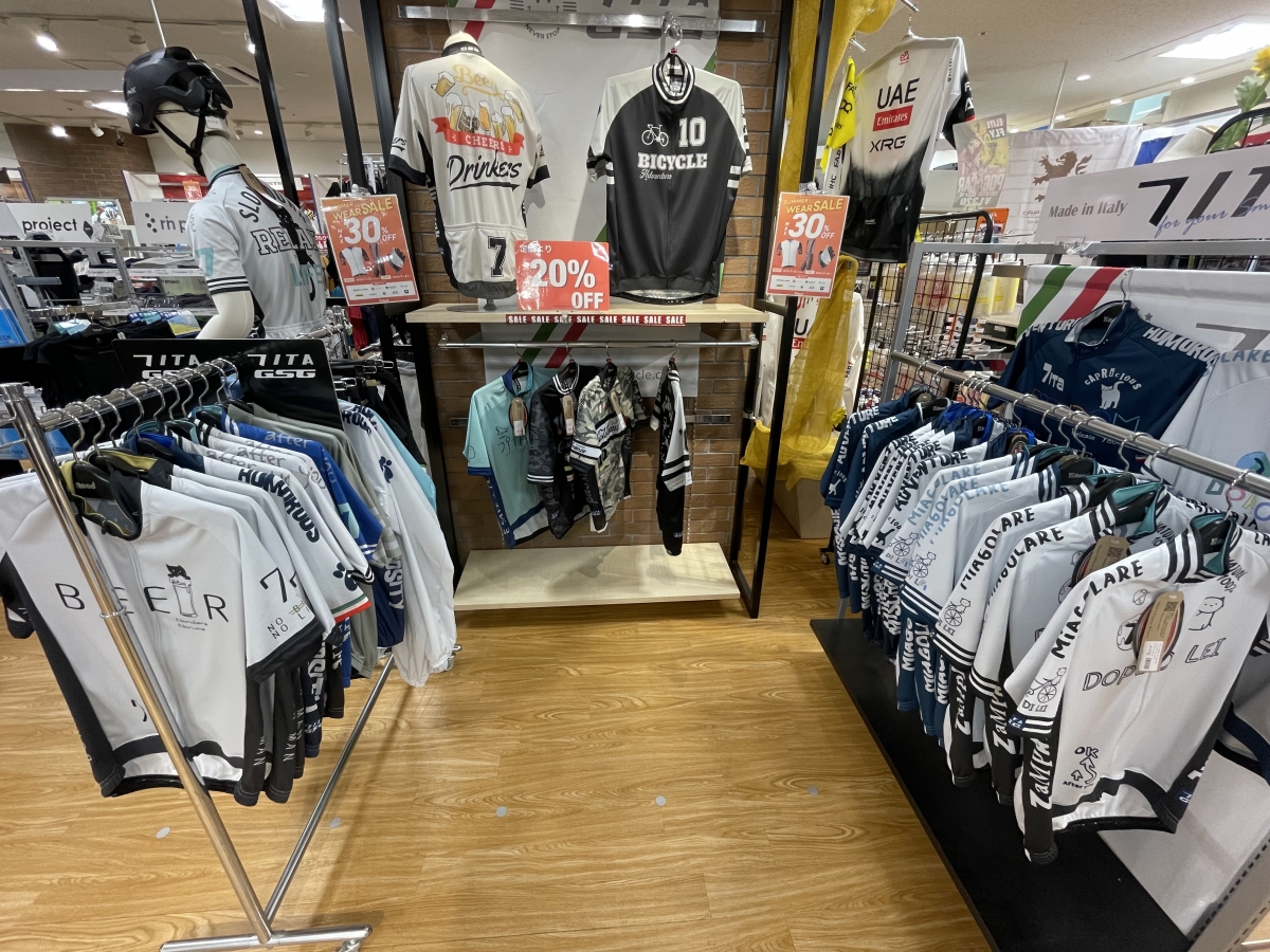 私がレース当日も着ていこうかと思っている7ITAのサイクルウェア!セール対象品は少なくなってしまいましたが、ワイズロード限定デザインも含めて、着ていて楽しくなるデザインのジャージが沢山ありますので、補給食のことも含めて、気になった方は是非!ワイズロード名古屋ウェア館へご来店下さいませ!お待ちしております♪