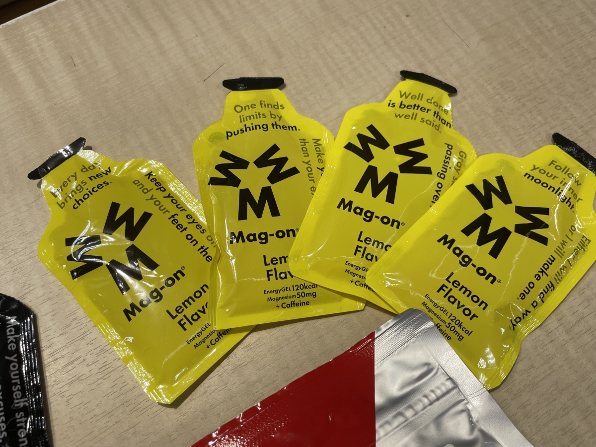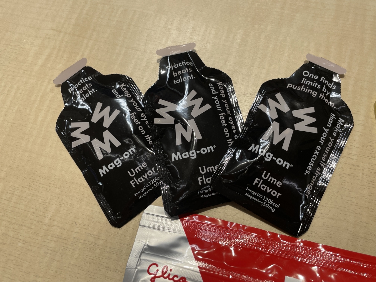 エネルギー補給とマグネシウム補給で、レース序盤から摂取予定の梅味のマグオン!