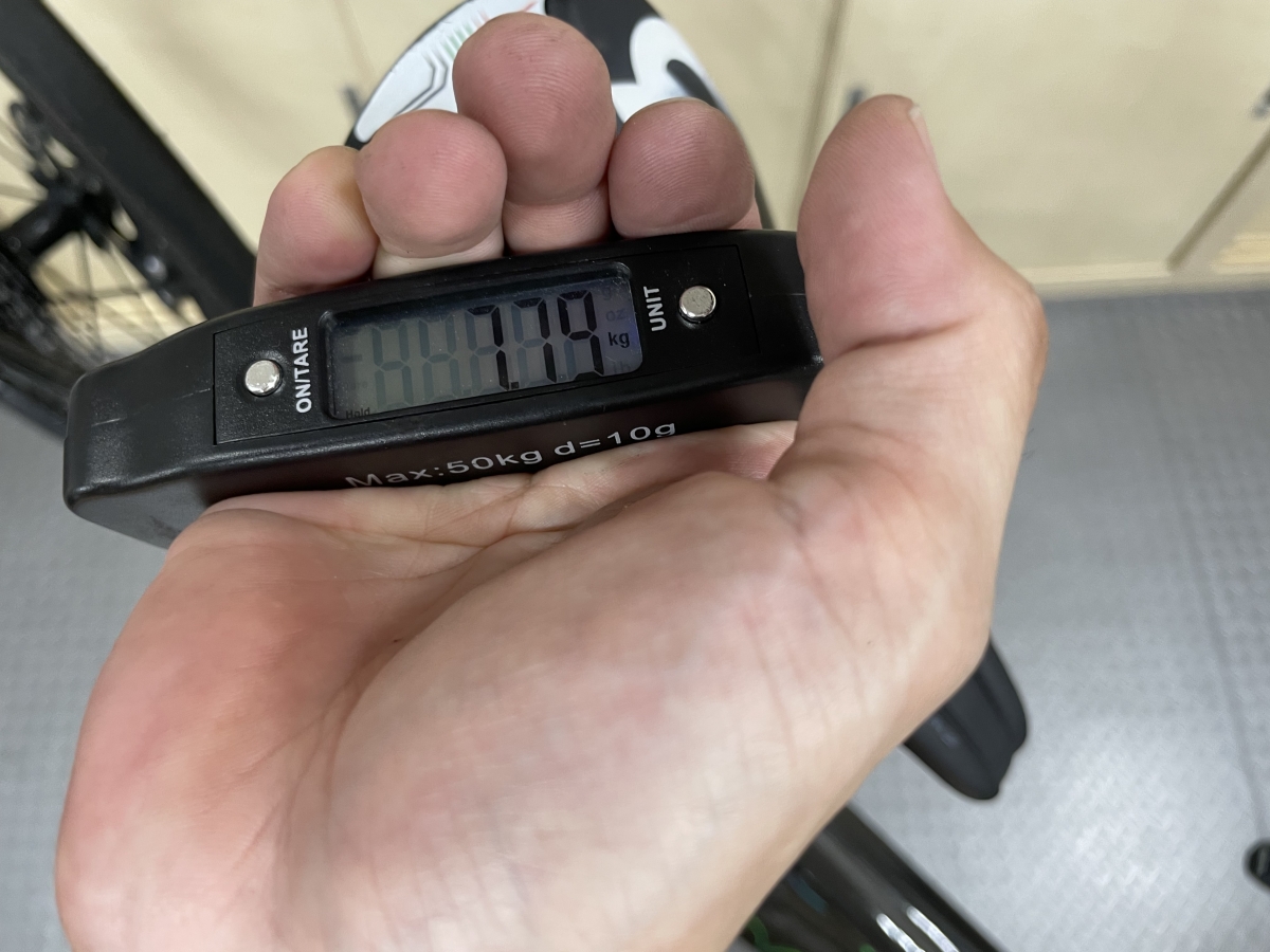 それらの結果が7.79kg!1.81kgもの軽量化!!(普段どれだけ重たいものをつけているのかと・・・)