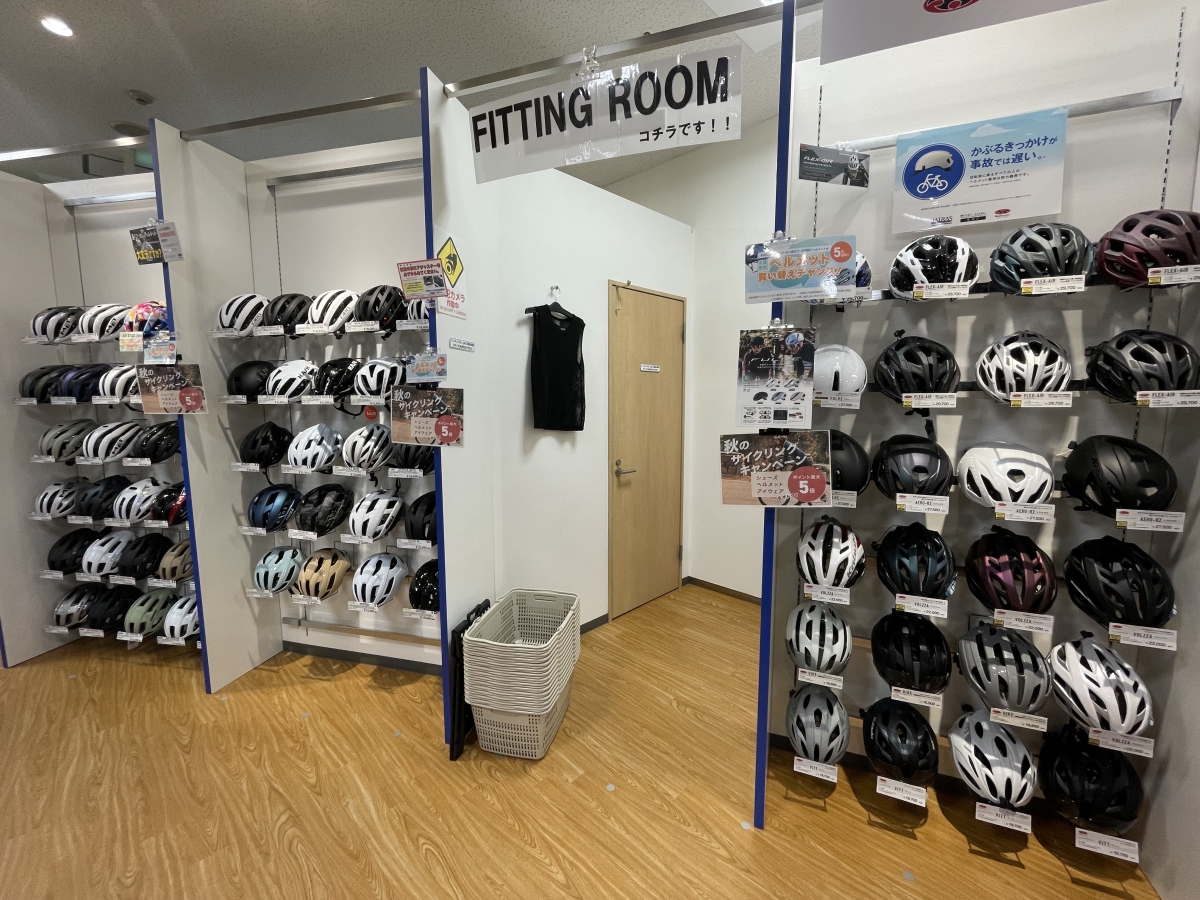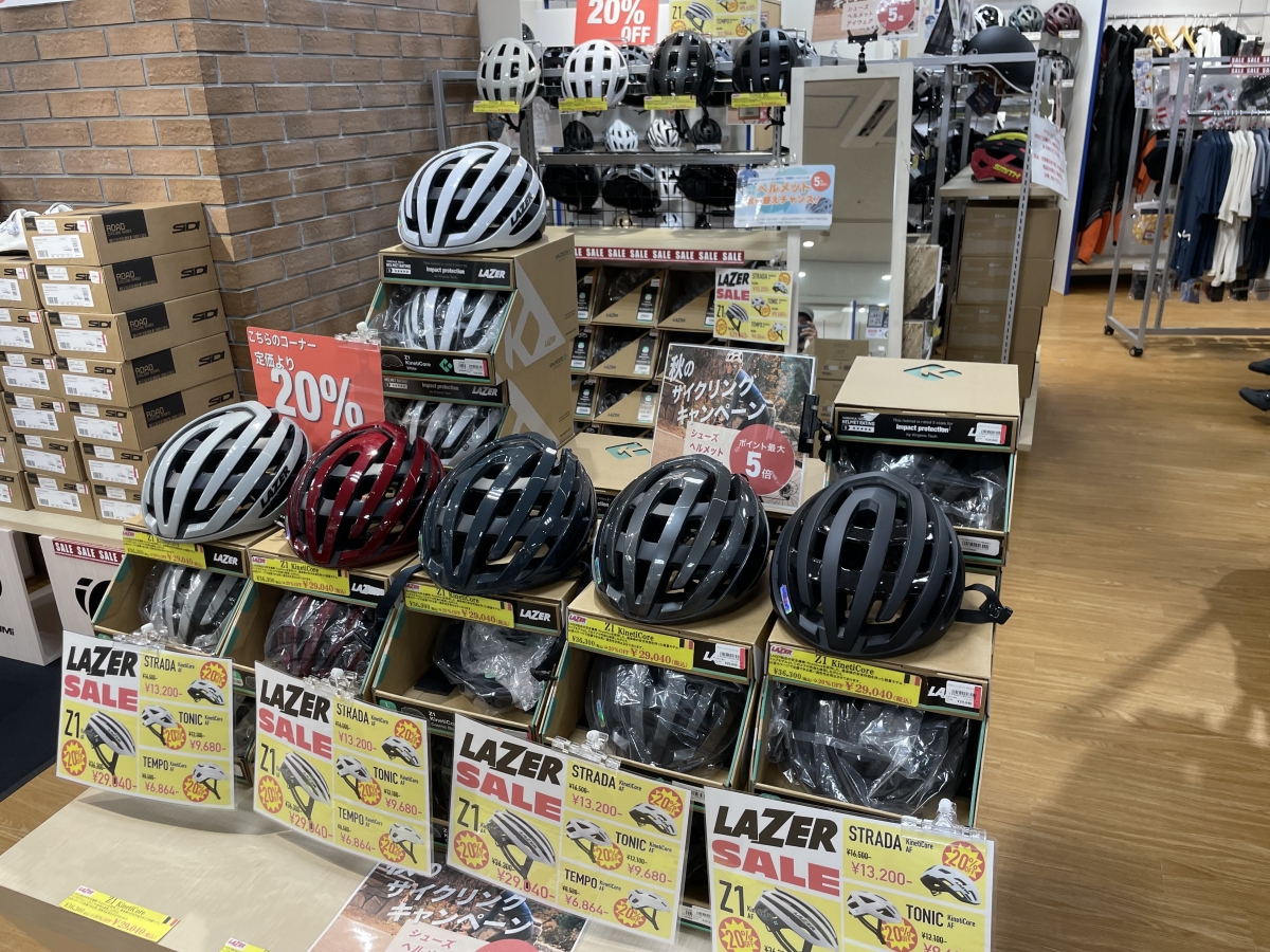 レジにて『ヘルメットの買い替えである』ことをお伝えいただければ、定価商品・特価商品関係なく、5%OFFをさせて頂いております!