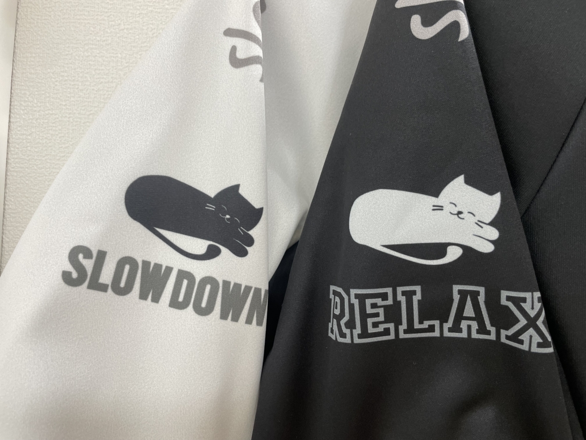 ホワイトとブラックで、袖のネコちゃんからのメッセージがちょっと違ってたりします。