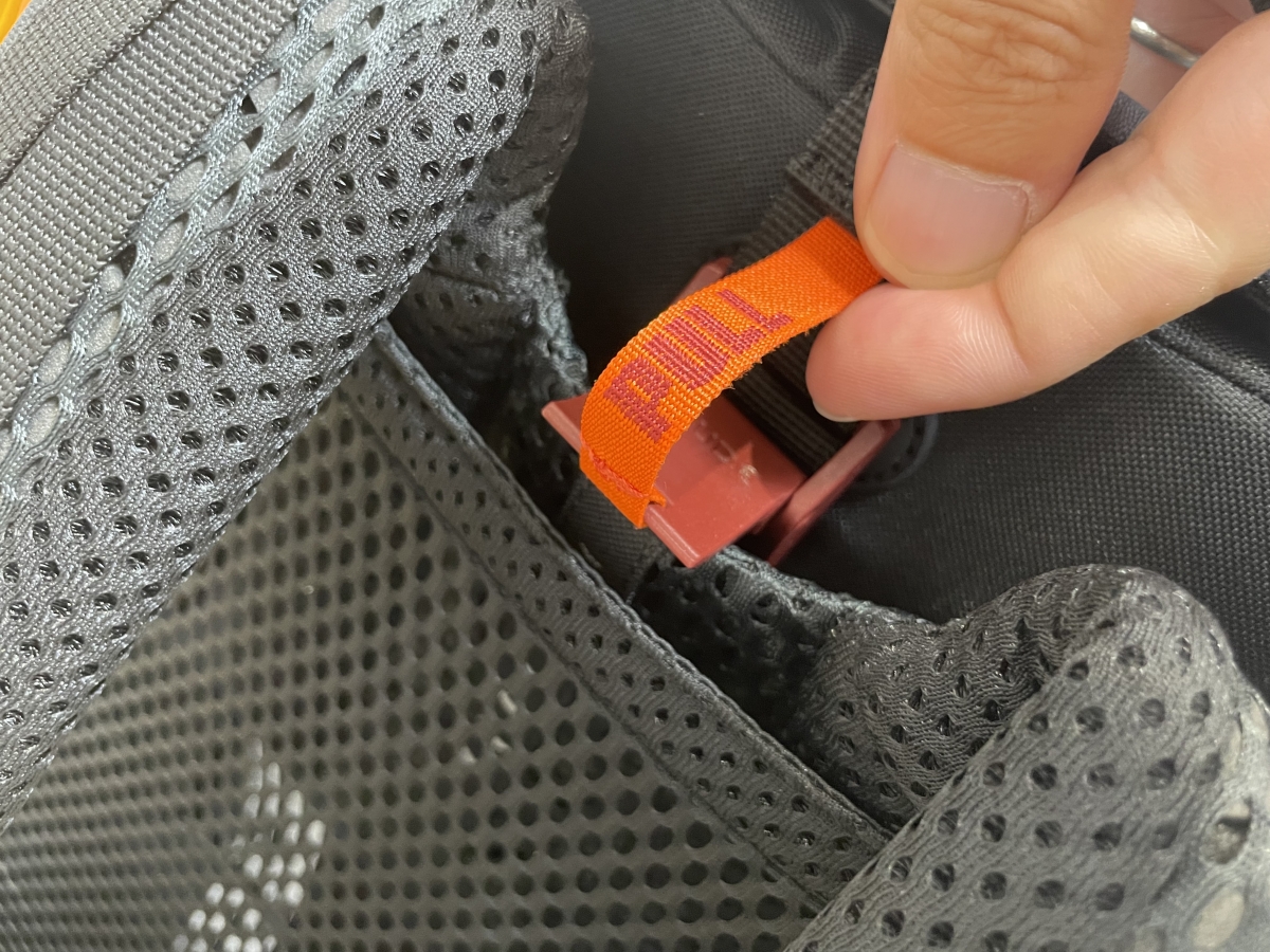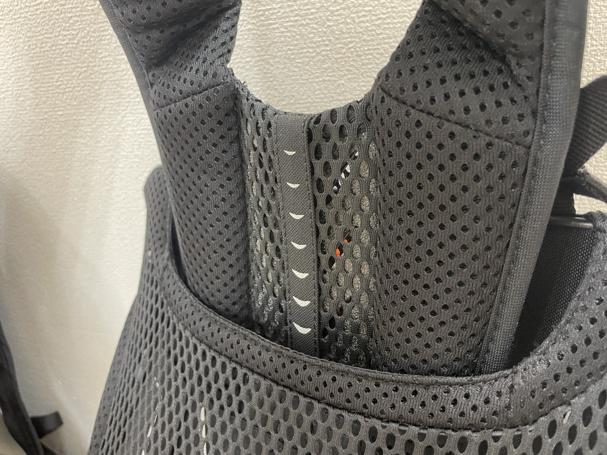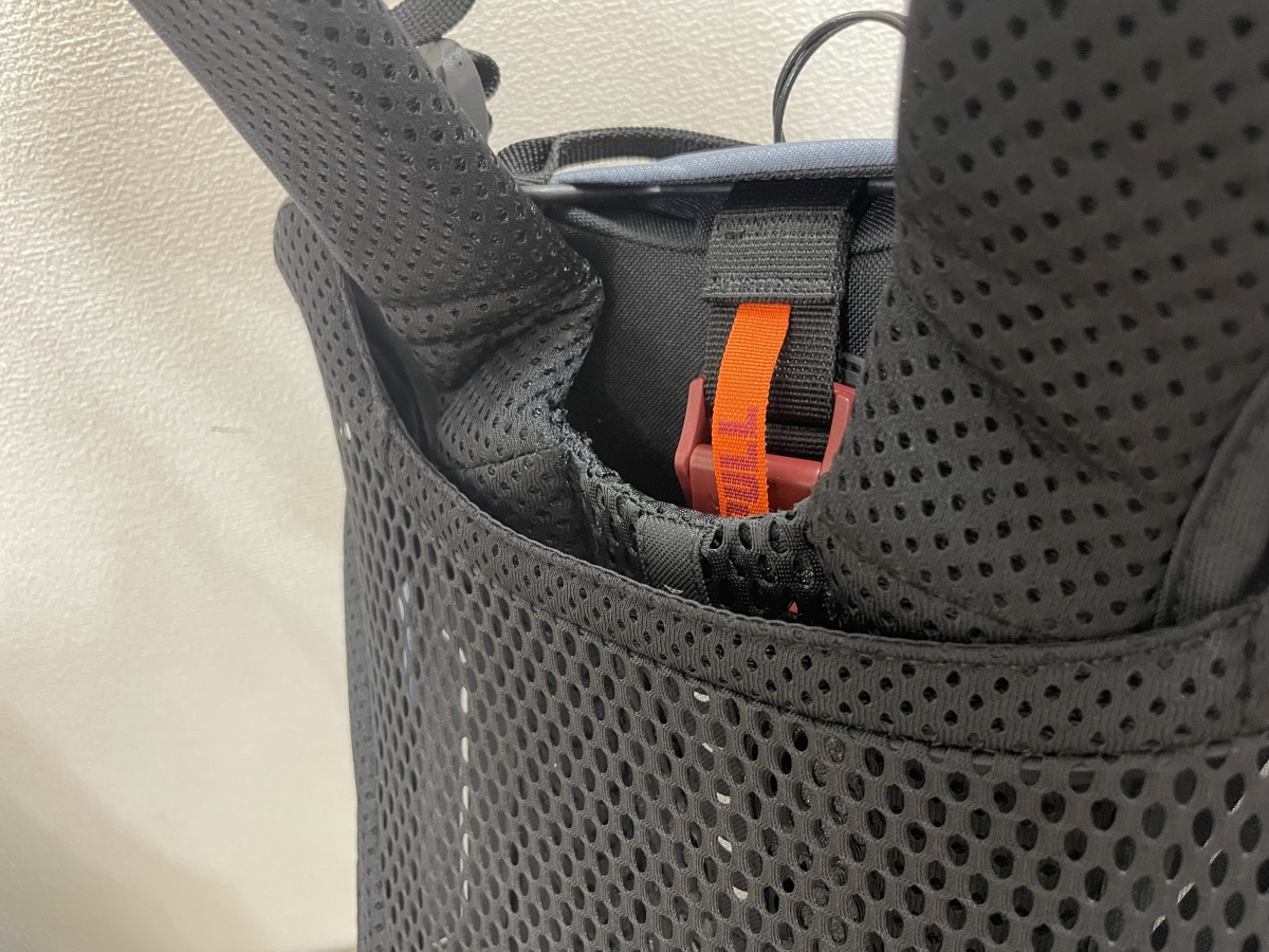 背中がバックパック本体と接触しないものは、いくつかのブランドでも見かけますが、このTRAILVENTはAEROFLEX 3D 2.0 サスペンションシステムという、通気性に優れた3Dメッシュパネルによって、背面にしっかりとフィットさせたうえで通気性を確保していますので、街中で周囲確認や振り返ったりするときや、ハードなダンシング時にもバックパックがズレることなく安定してくれます!