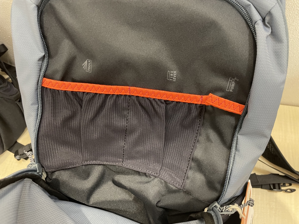 サブポケットには、タイヤレバー、ミニツール、ポンプ、修理キットなどを整理整頓しやすい実用的なつくりになっております。
