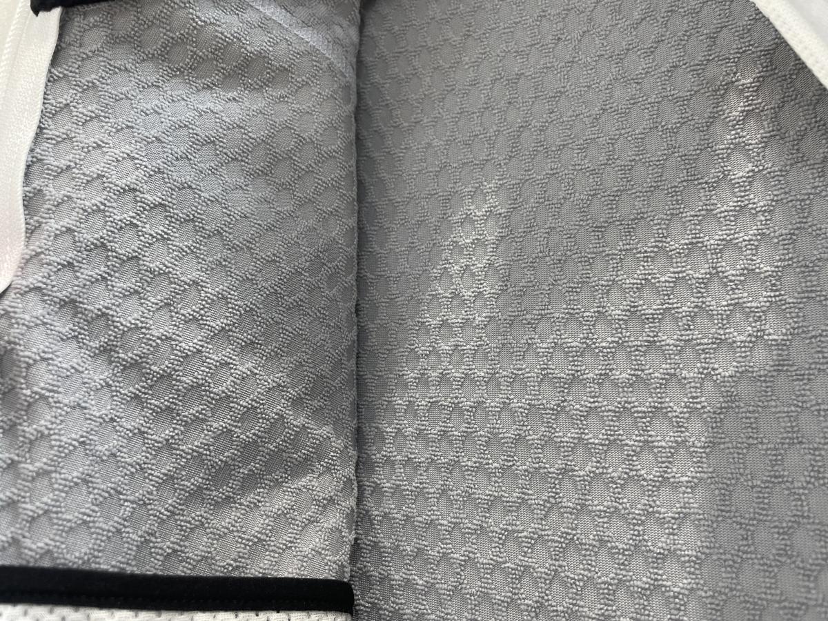 前後身部分の内側は、立体的な薄手裏起毛となっており、空気層も含めた保温性と表面積を広げた分の速乾性に優れているからこそ、高強度のトレーニング時の発汗に対して、水分を素早く気化させたうえでジャケット外に発散します。