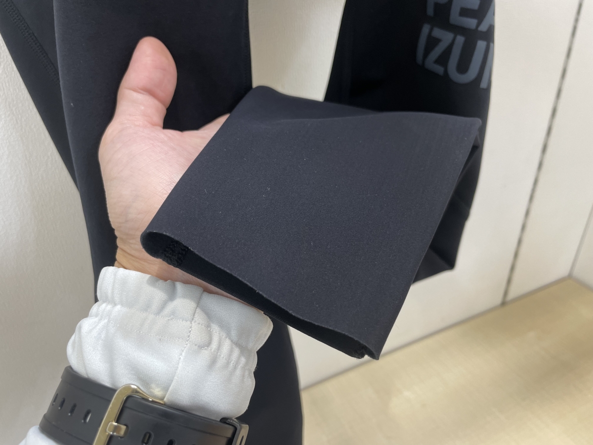 袖の裏地は、微起毛で保温性は低めになっておりますので、ハードに走った場合の蒸れによる不快感が少なくなっています。