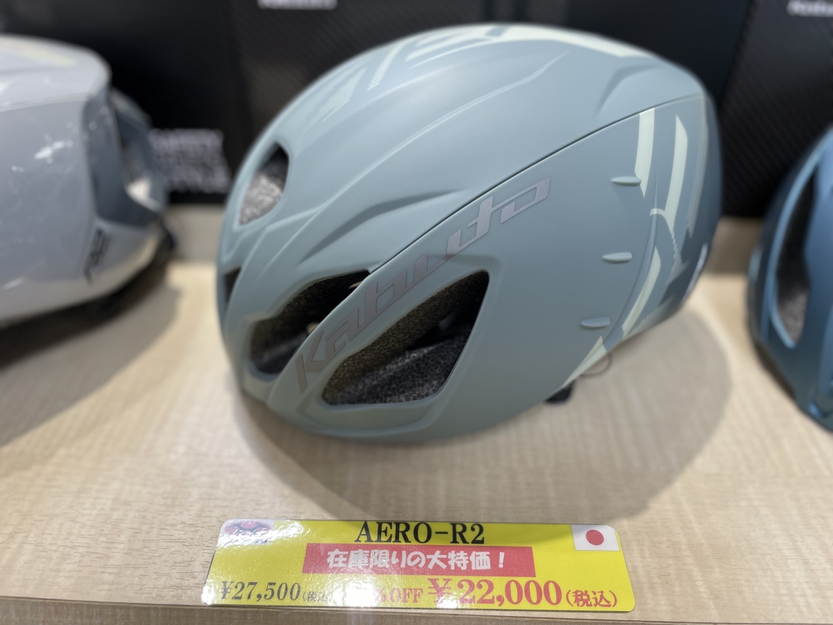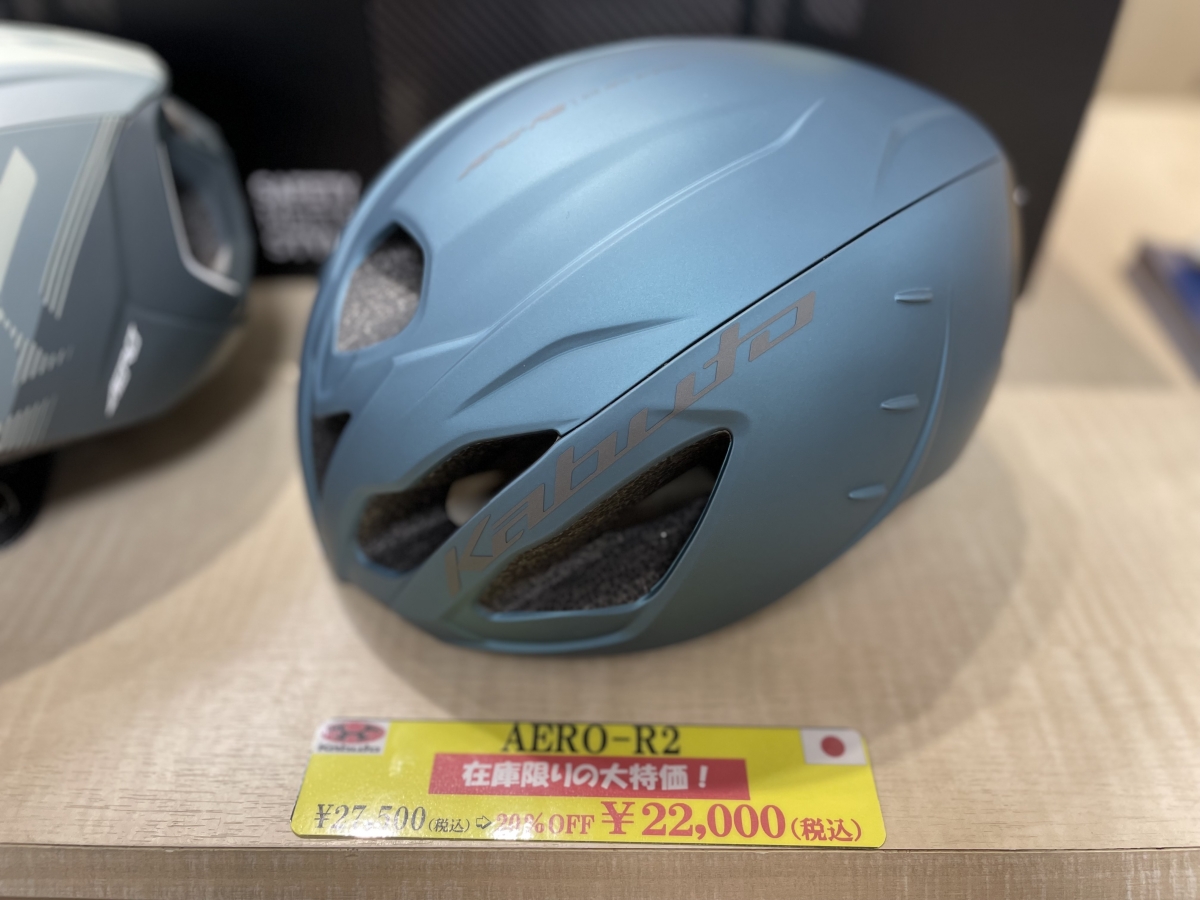 KABUTO最軽量のモデルと、ロードヘルメットとして最もエアロ効果が高いモデルが、現行モデルなのに数量限定で20%OFFで入荷してきてます!